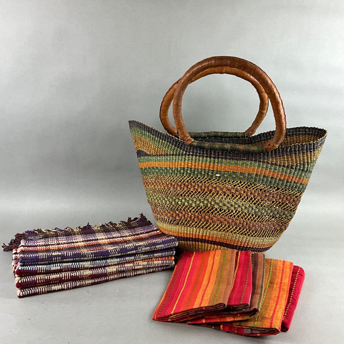 523 Woven Gathering Basket with Multi Colored Linens