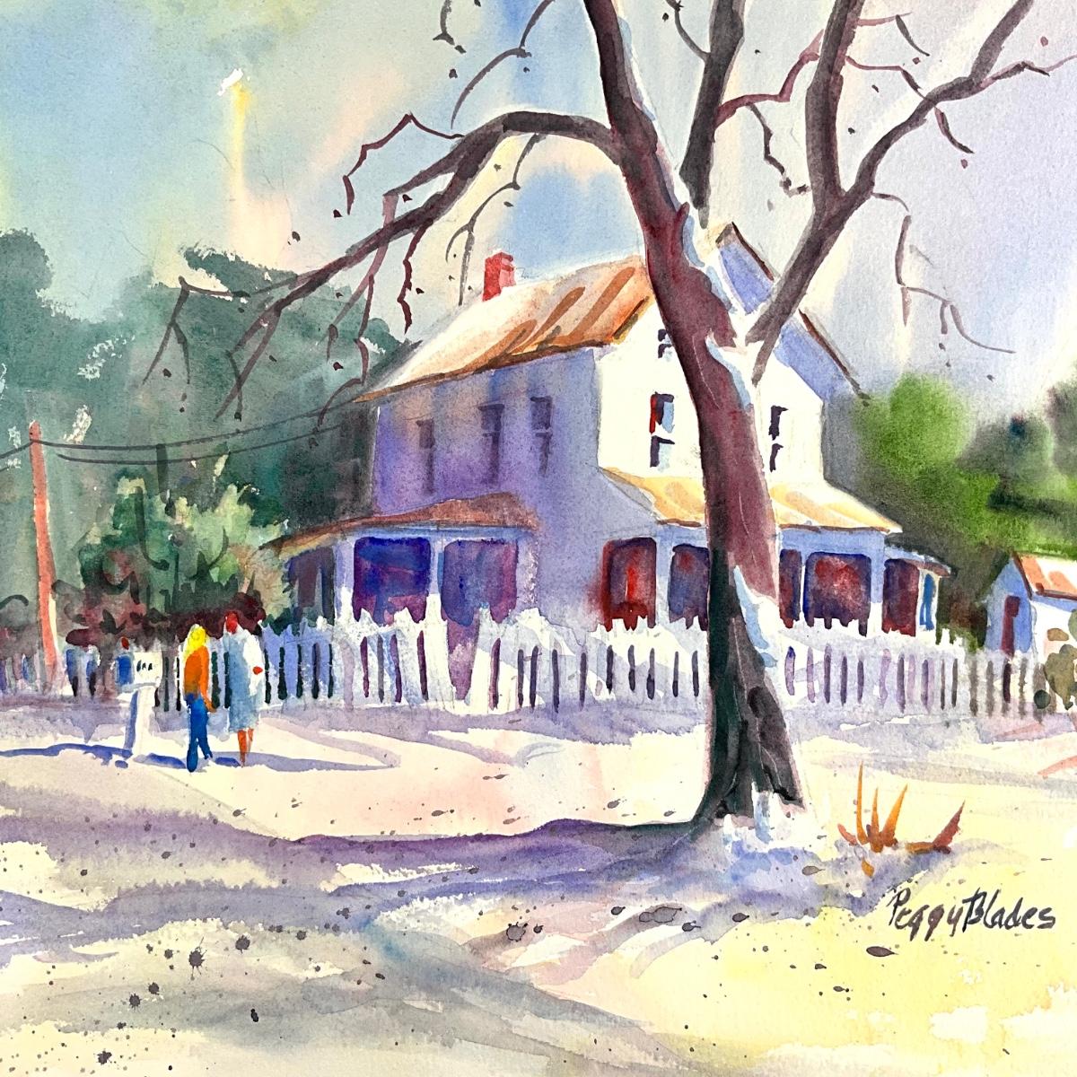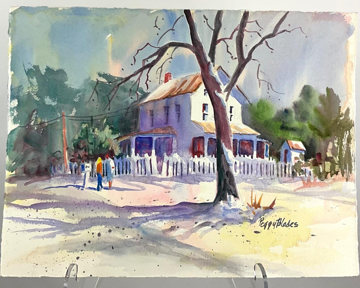524 Original Watercolor of Winter House Scene by Peggy Blades