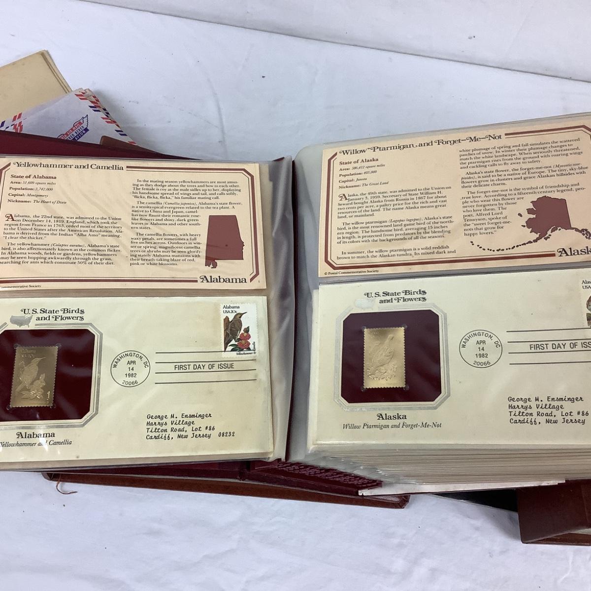 One book containts golden State bird collection, and the other is the states golden stamp collection with air mail envelopes and sheet of stamps