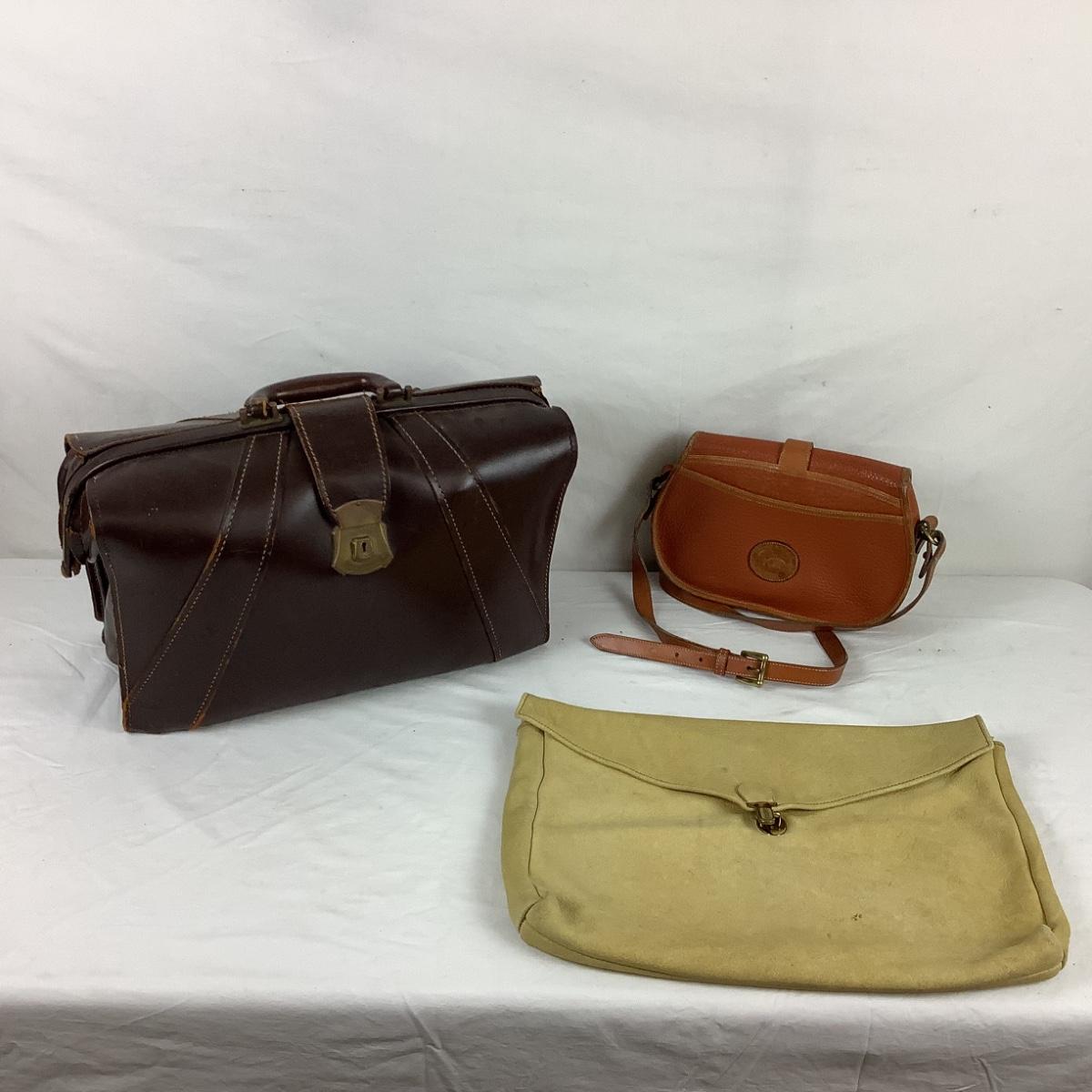 Vintage doctor bag, dooney & Bourke purse, and portfolio bag
