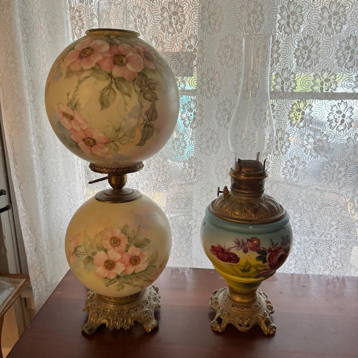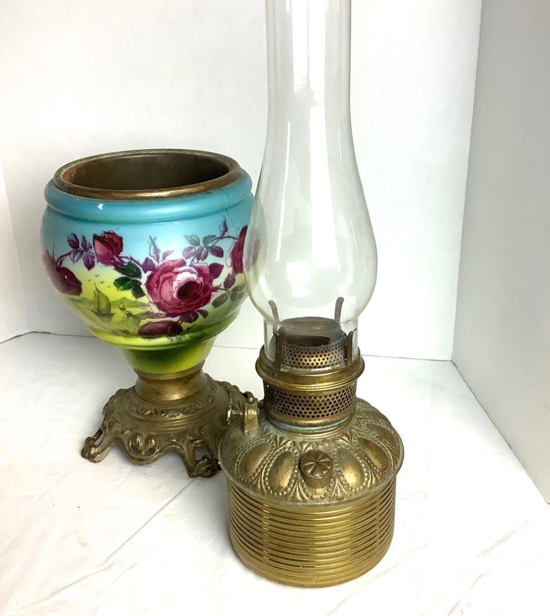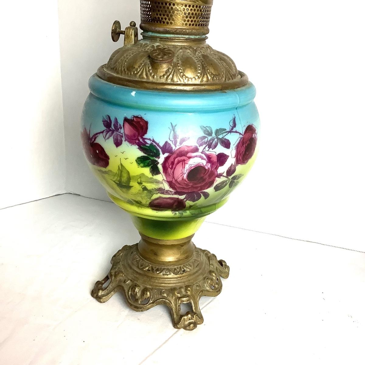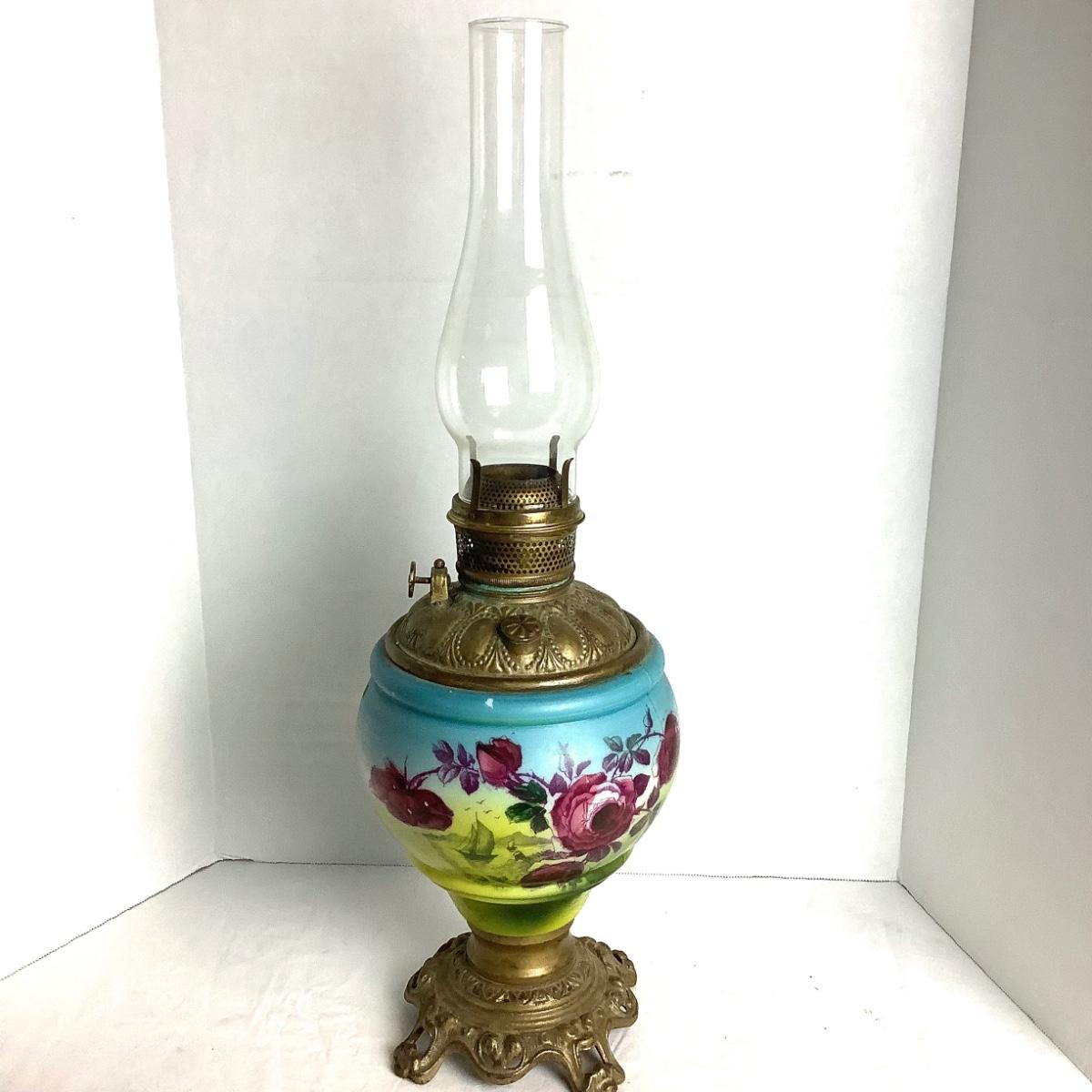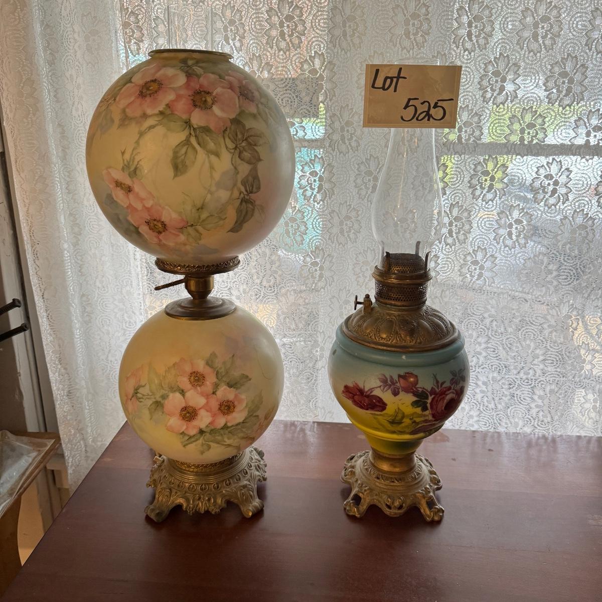 525 Antique Hand Painted Victorian Oil / Electric Lamps