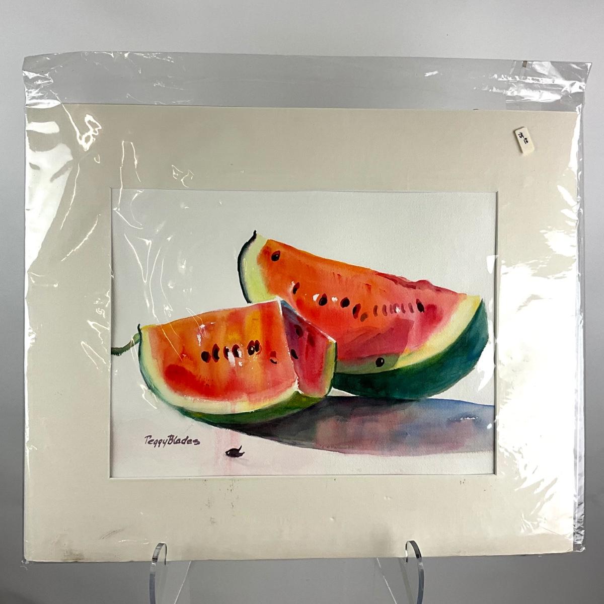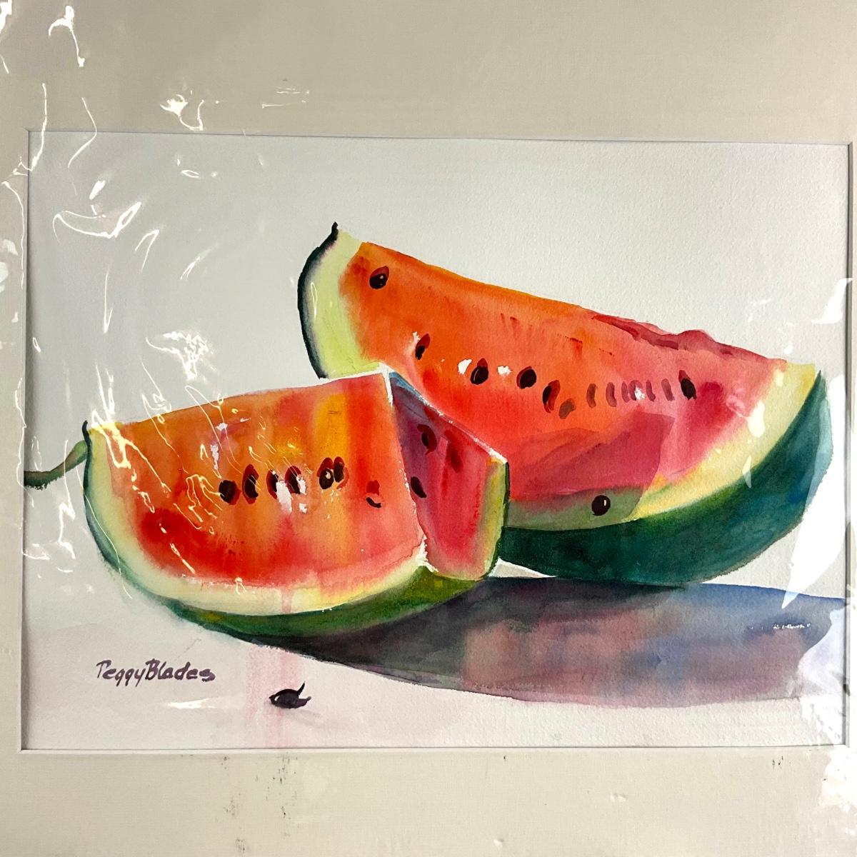 525 Original Watercolor of Watermelons Still Life by Peggy Blades