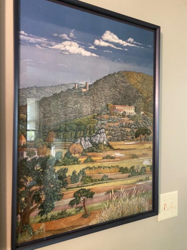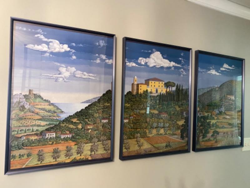 Set of 3 Framed Prints by Savina Tavano Amodeo of Paesaggi di Maremma with signed book in Italian. Framed prints measure 31” high and 22-1/2” wide