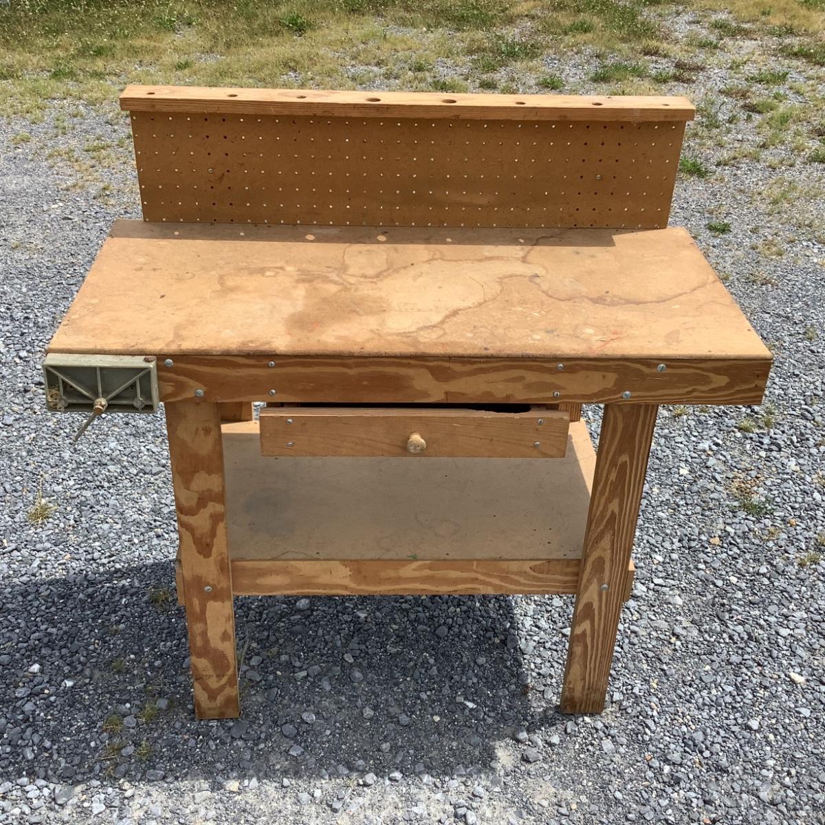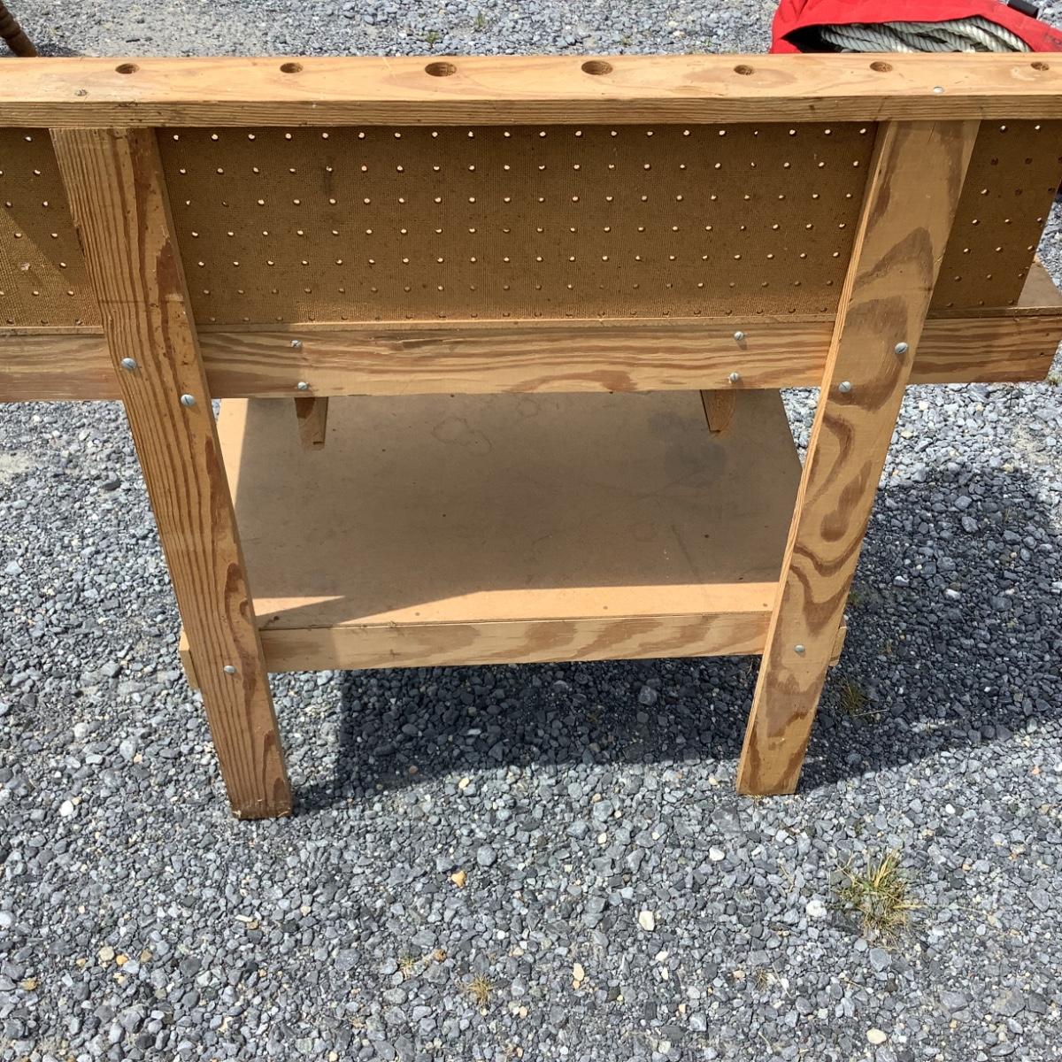 35" wide x 16" deep x 26.5" high (work bench ) with peg board 34" high