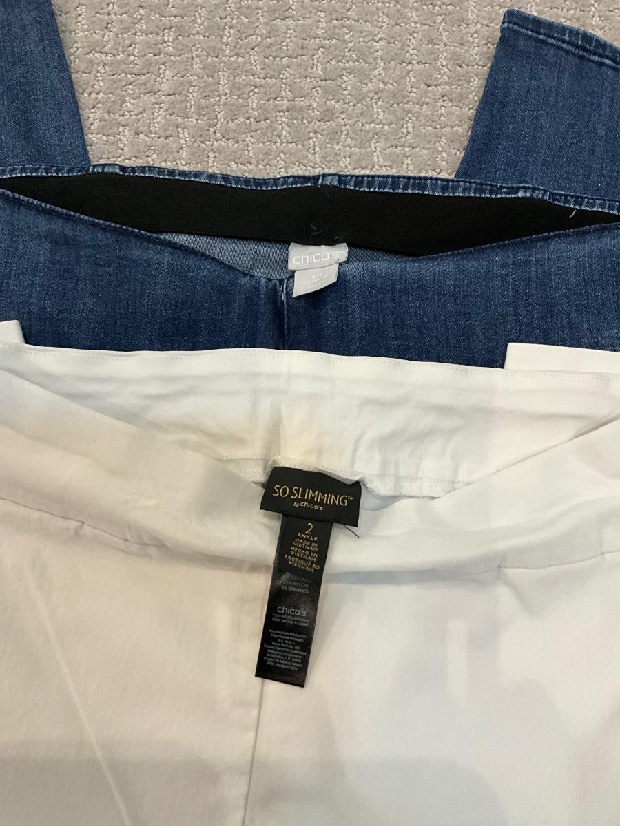 White pants are size 2 (16) so slimming