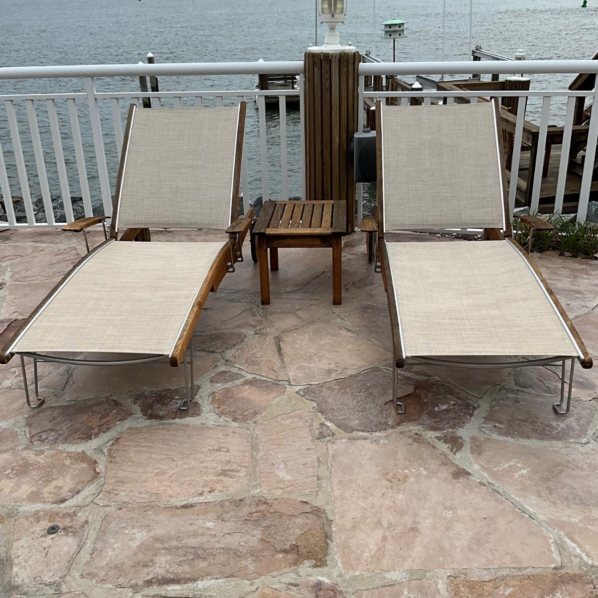 527 Pair of Gloster Lounge Chairs and Teak Table