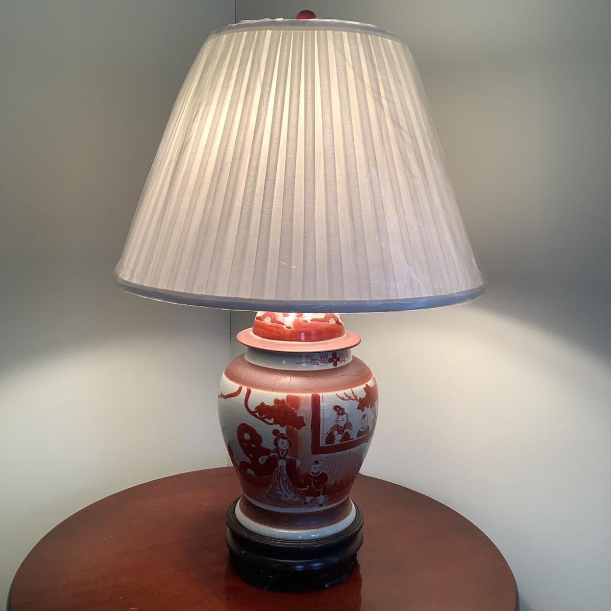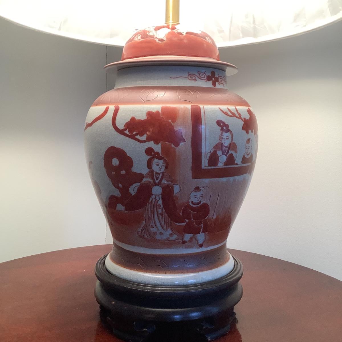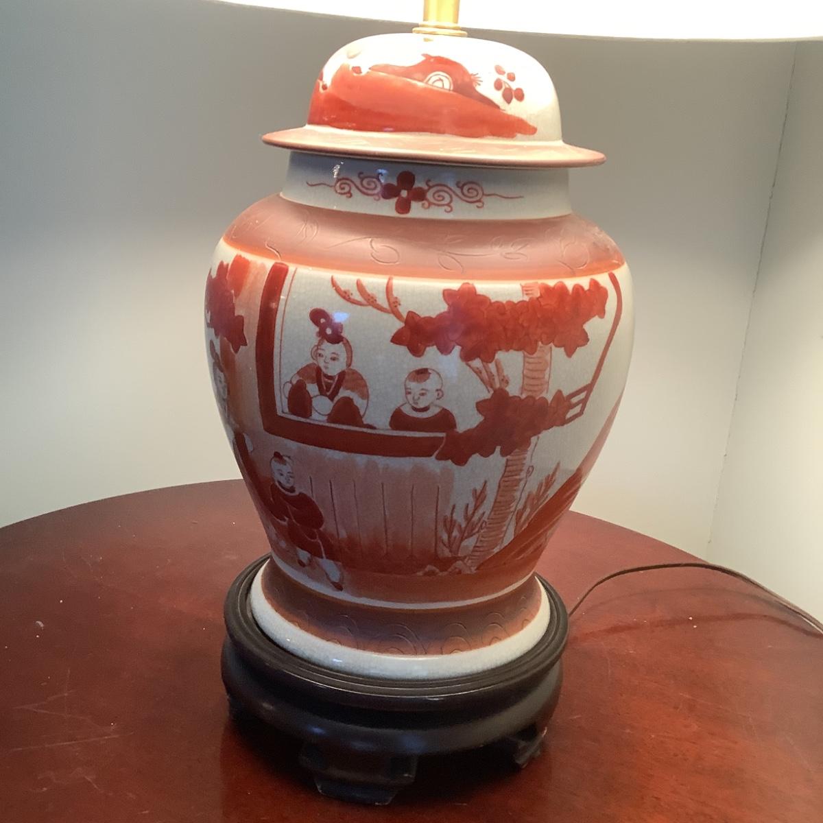 527 Vintage Asian Hand painted Ginger Jar Porcelain Table Lamp