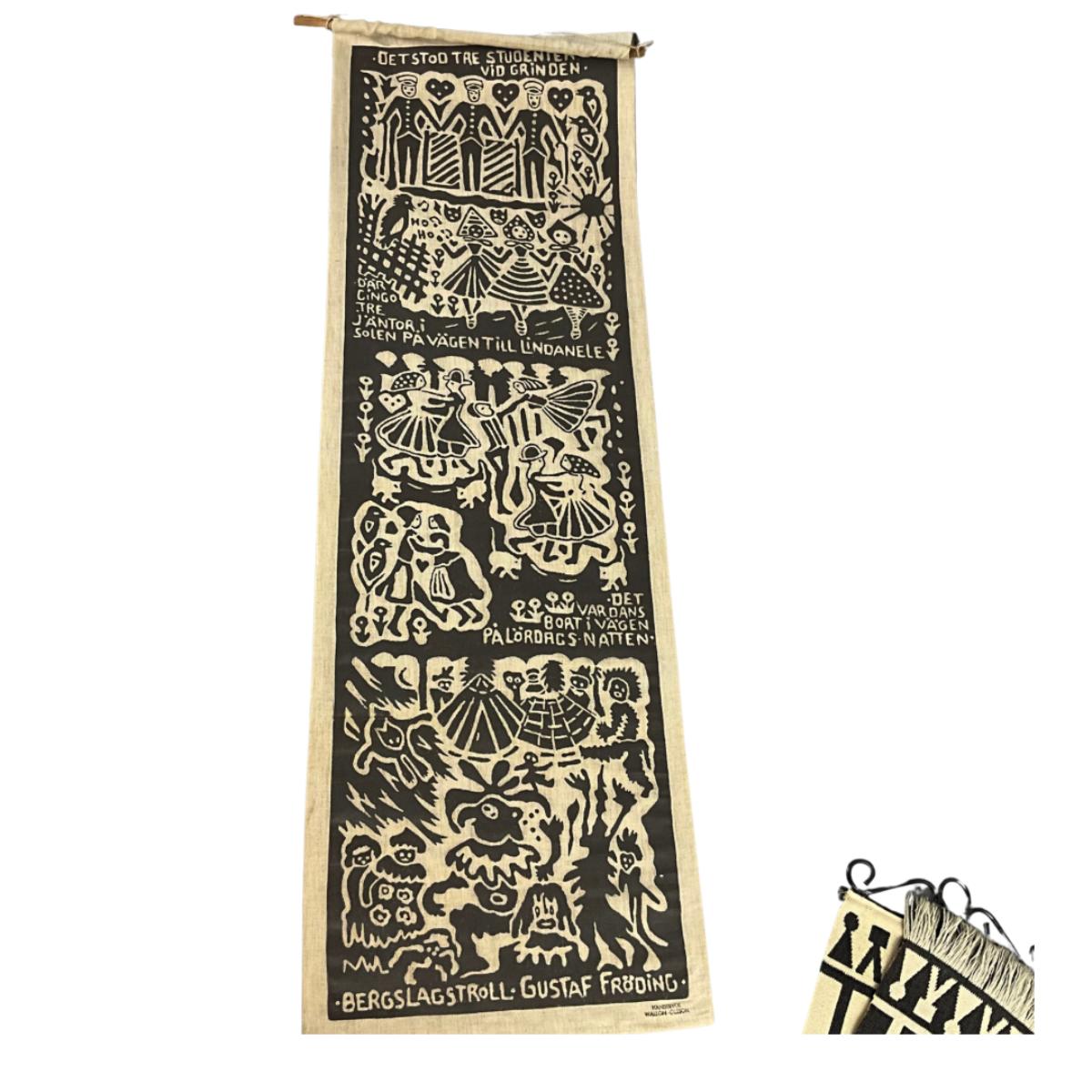 528 Mid Century Handprinted and Hand Woven Swedish Lyrics by Gustaf Fröding-Inger Wallon Olsson Design