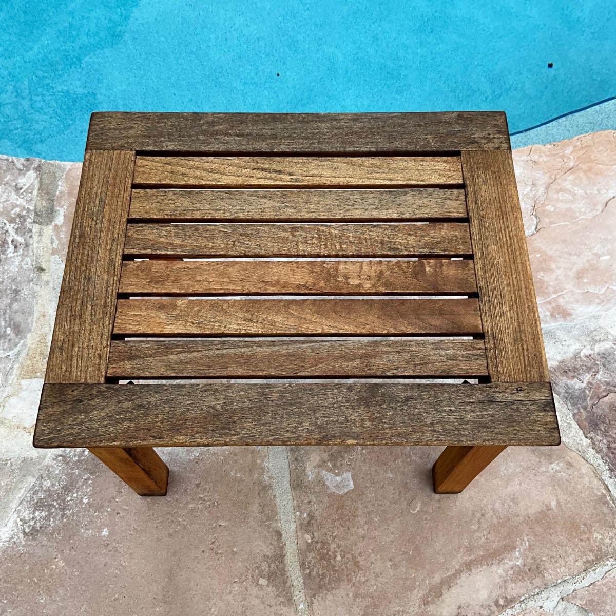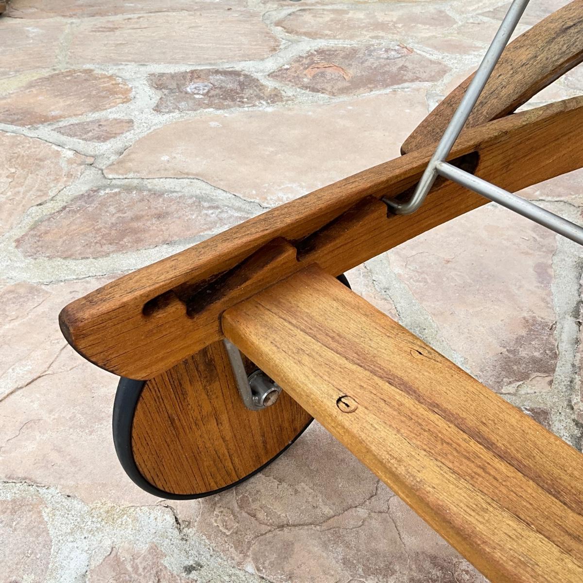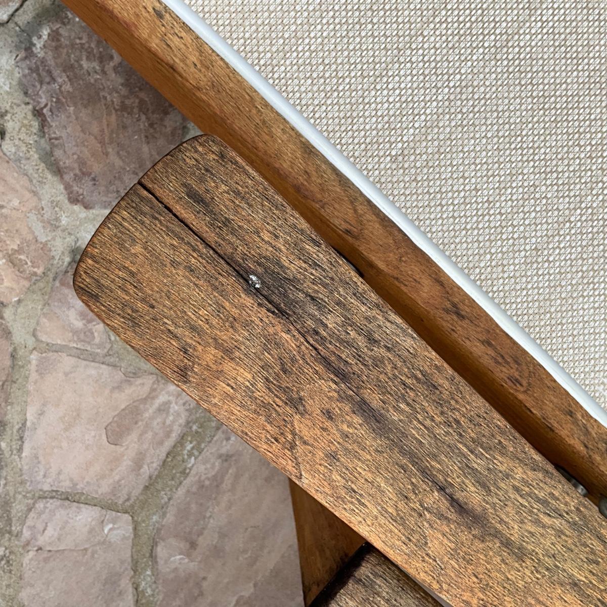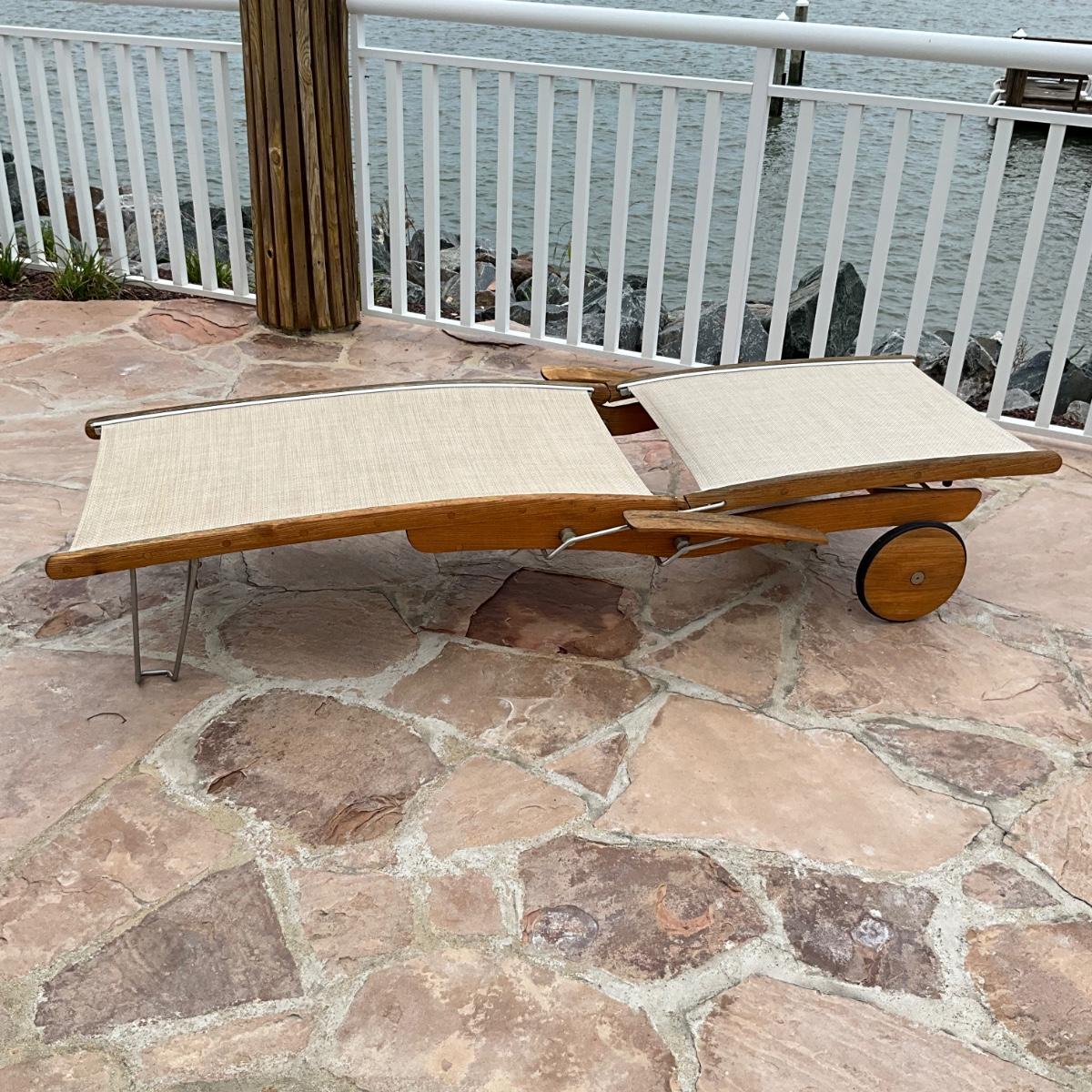 Chairs are a mesh with teak sides and metal legs with collapsible arms