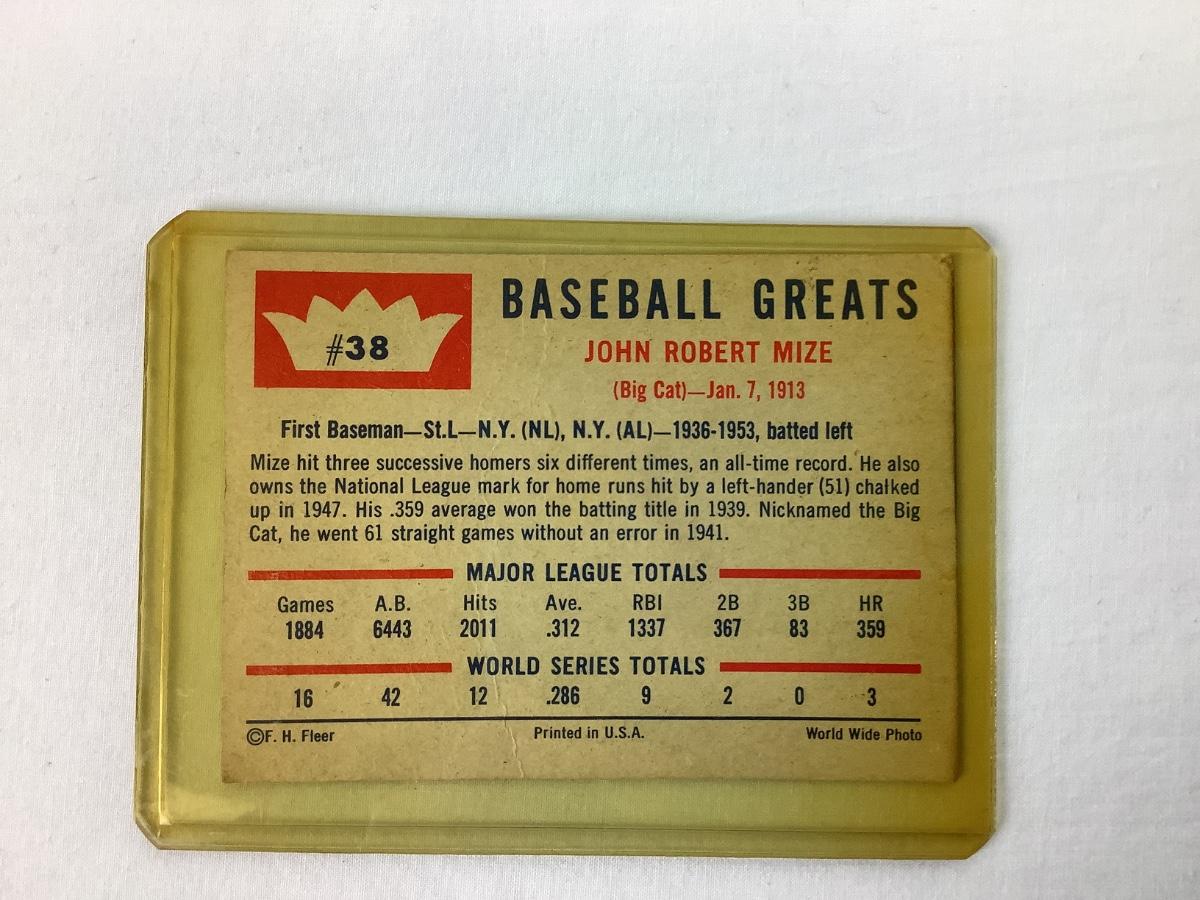Vintage 1960 Fleer Baseball Greats Johnny Mize, New York Yankees #38 Baseball Card.
