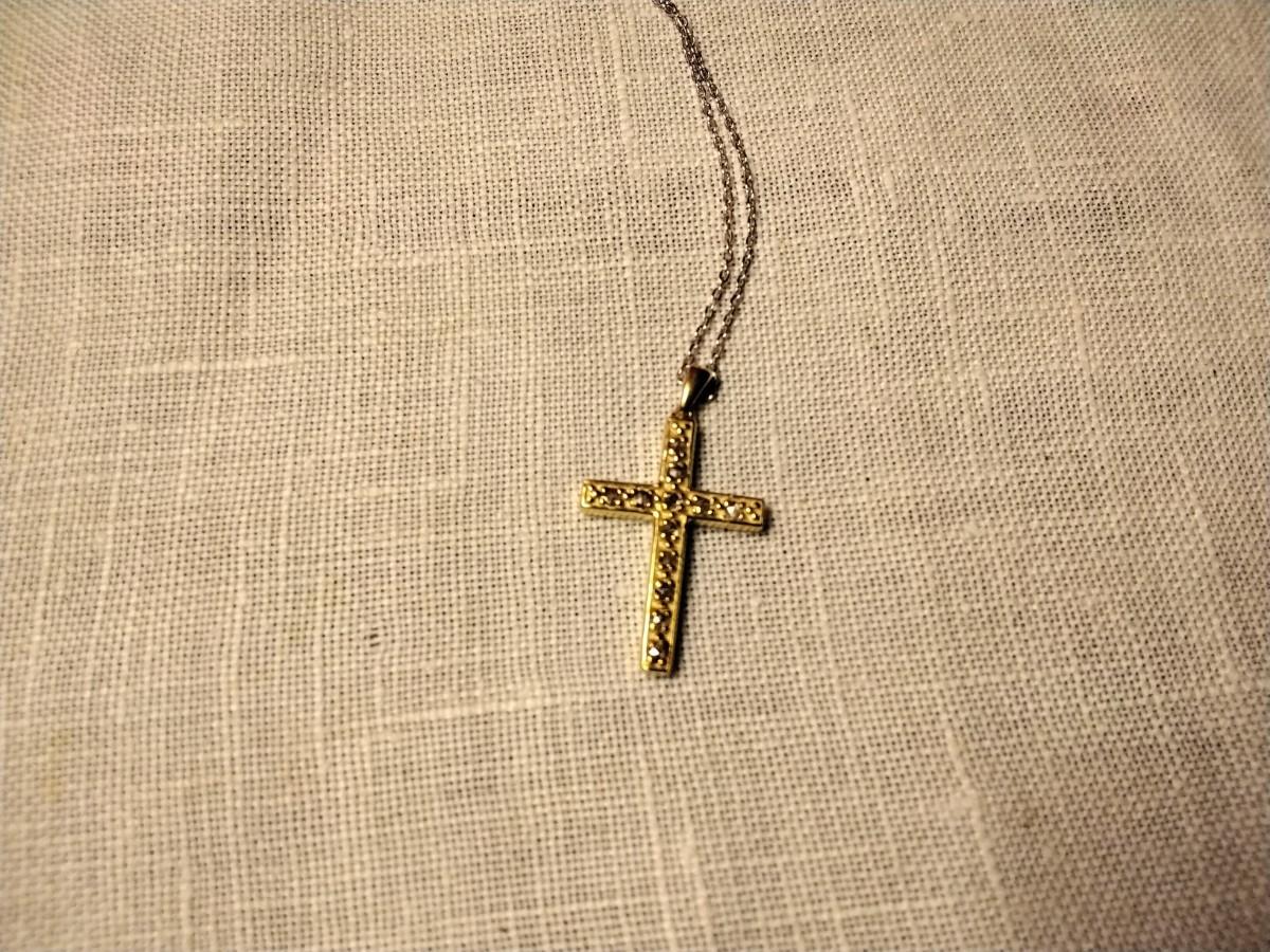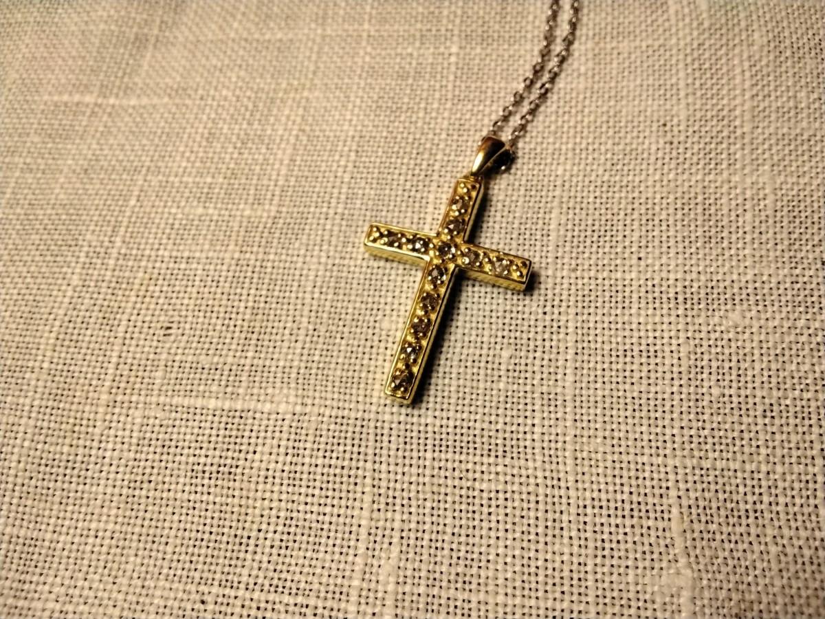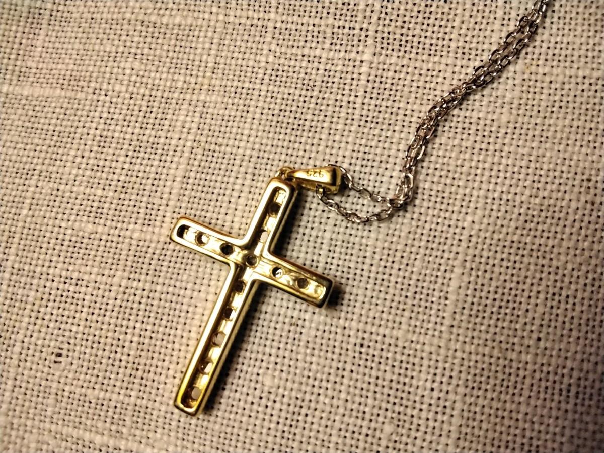 .52ctw H-SI Diamond 14K Yellow Gold 925 Sterling Silver Cross Necklace
