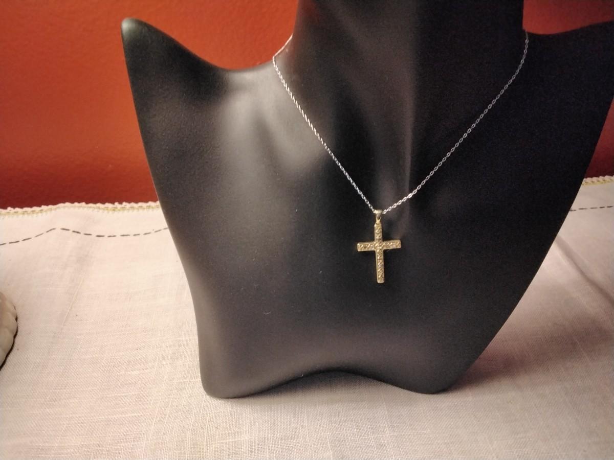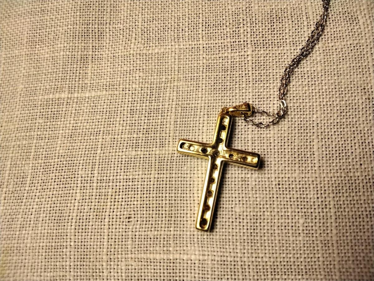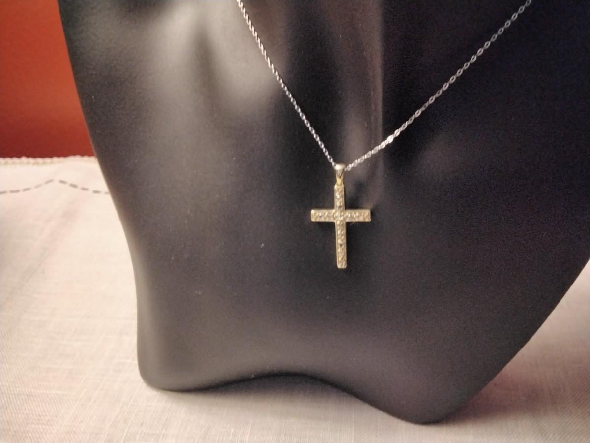 .52ctw H-SI Diamond 14K Yellow Gold 925 Sterling Silver Cross Necklace