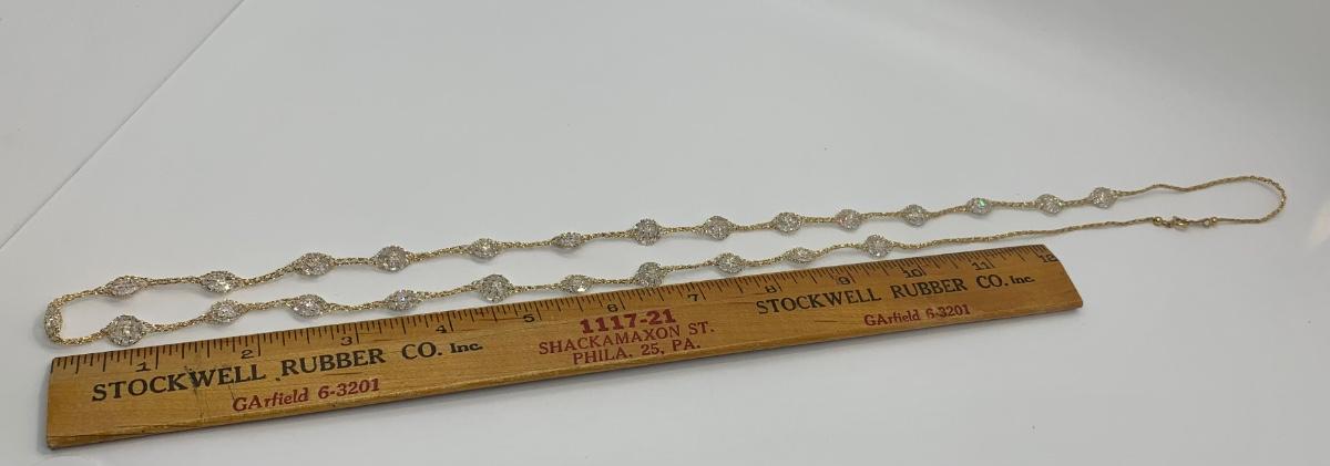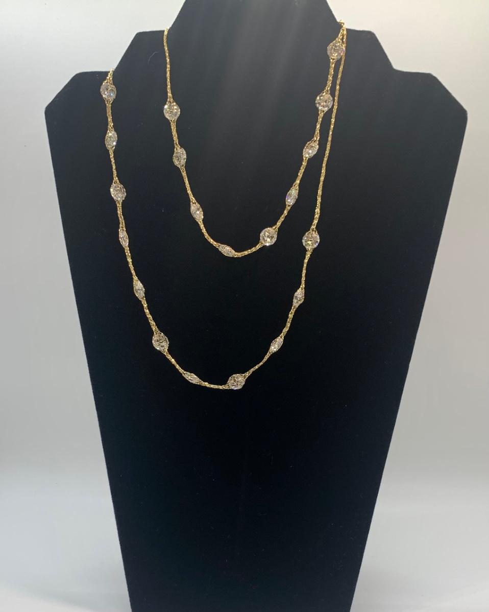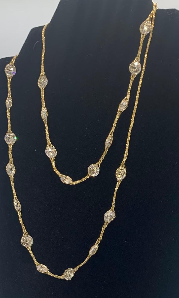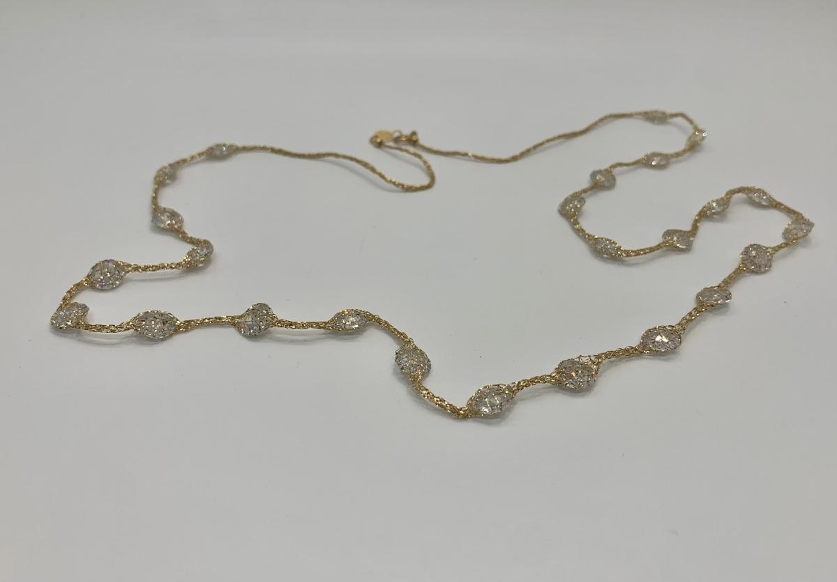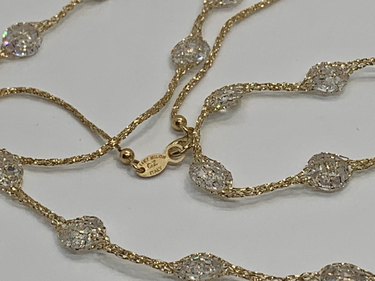 53: 14 K Milor Italy CZ Spectacular fine gold necklace- netting over Crystal