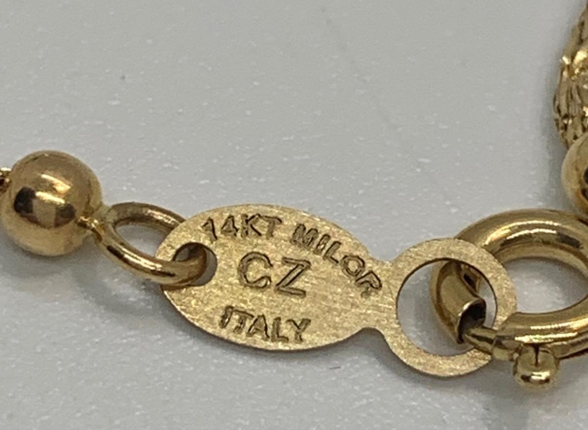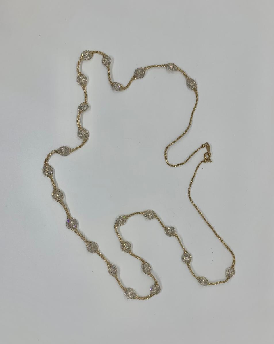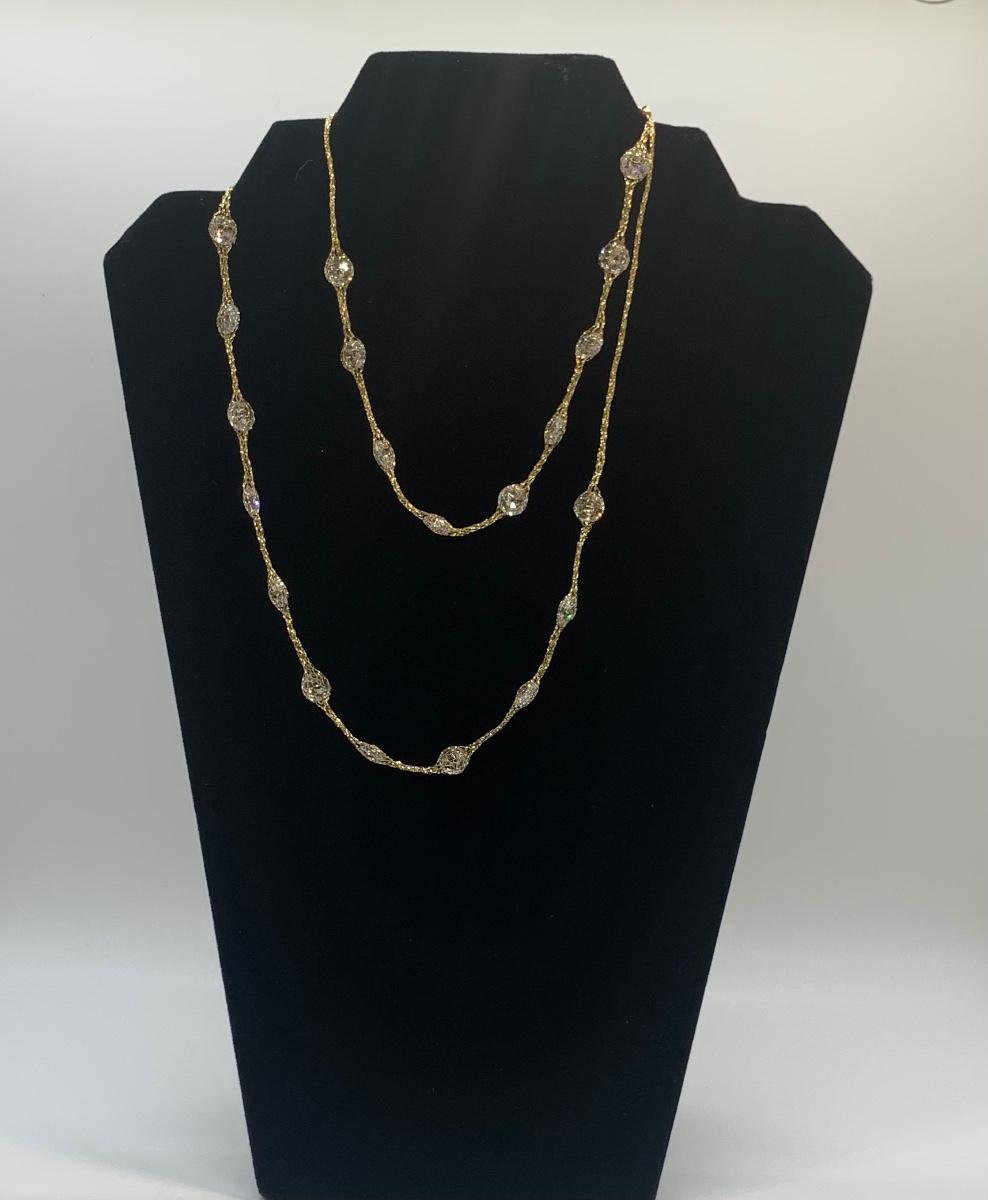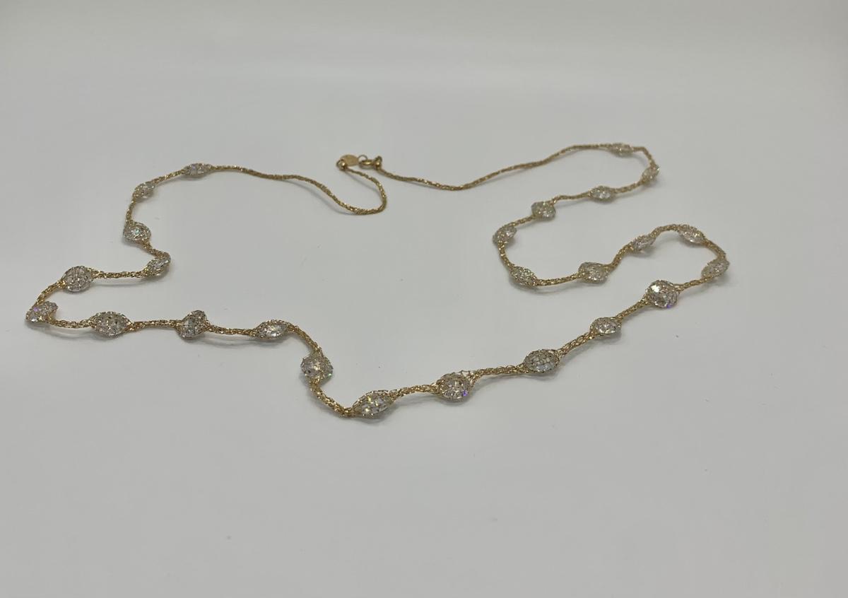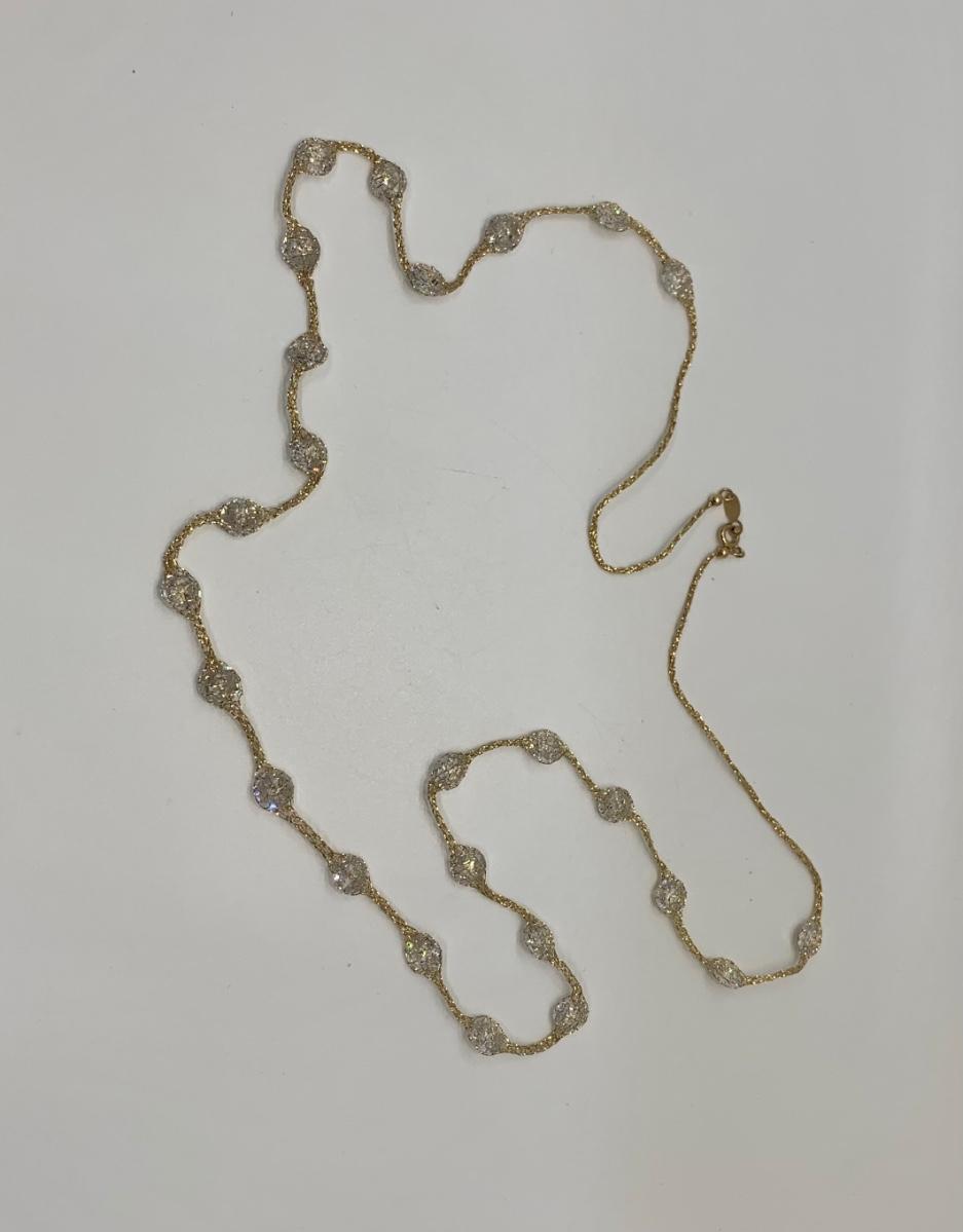 53: 14 K Milor Italy CZ Spectacular fine gold necklace- netting over Crystal