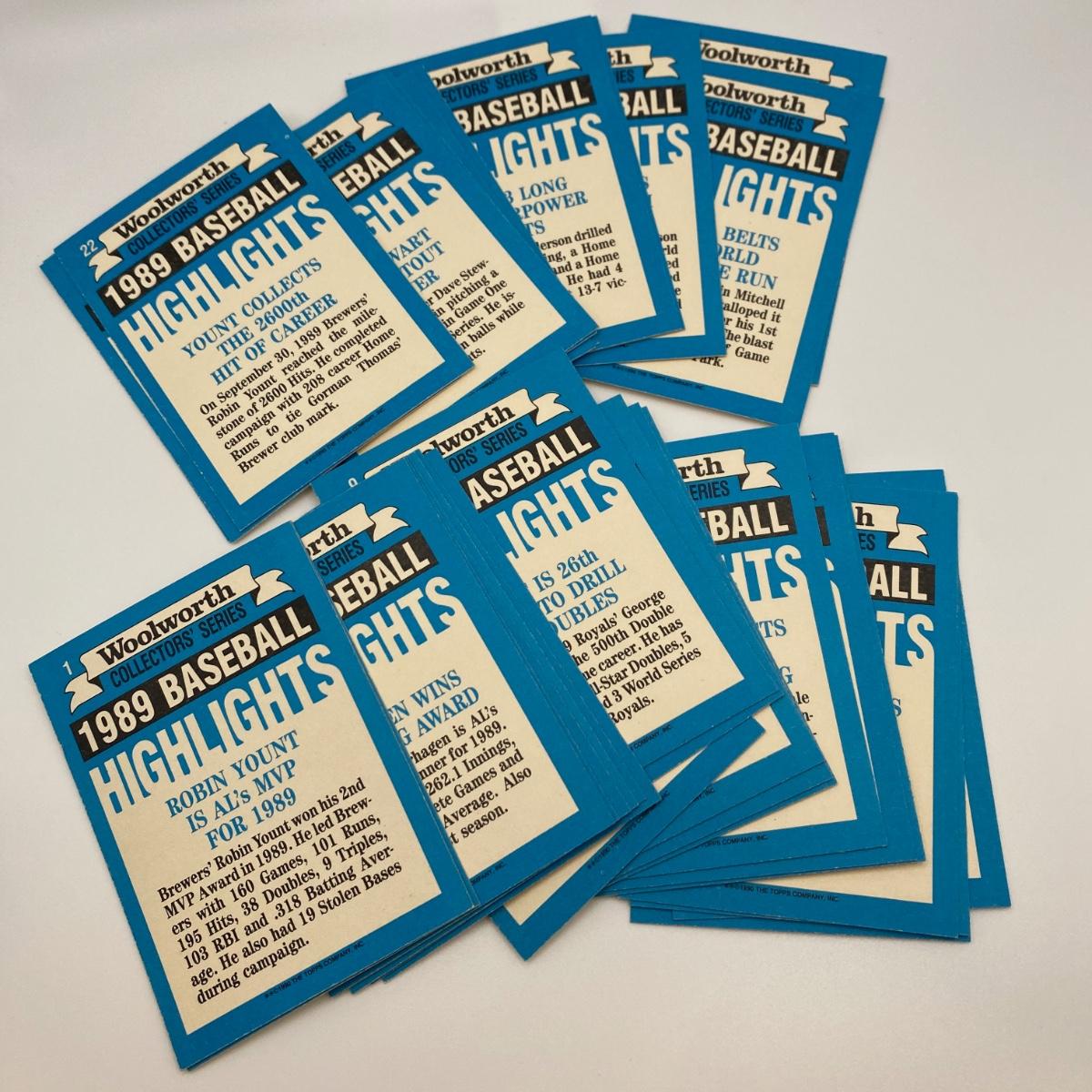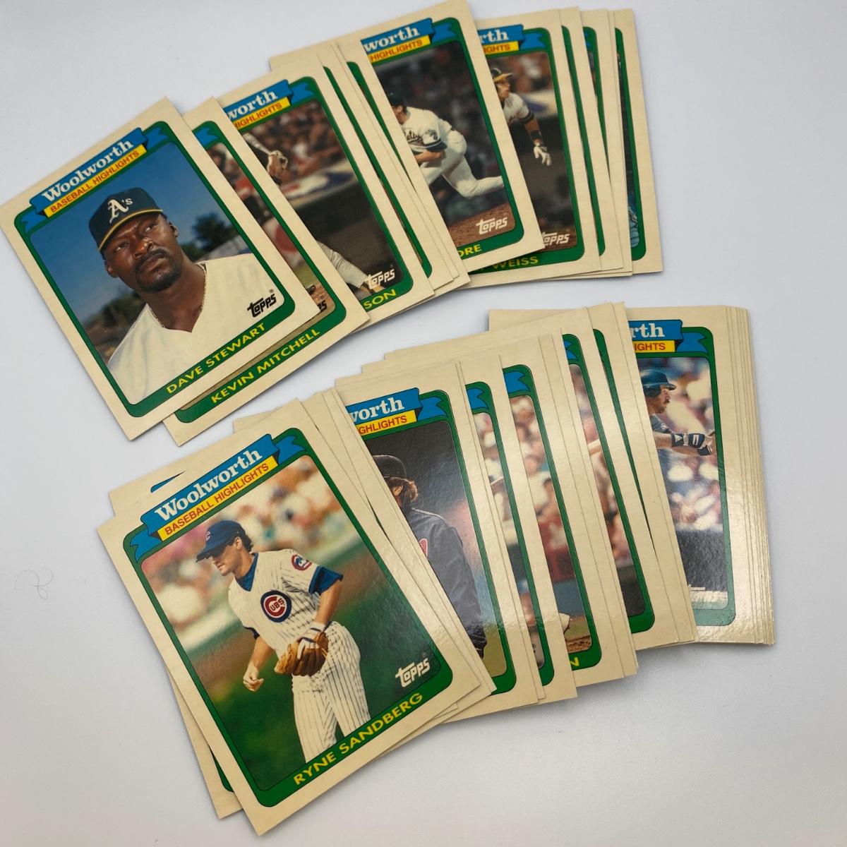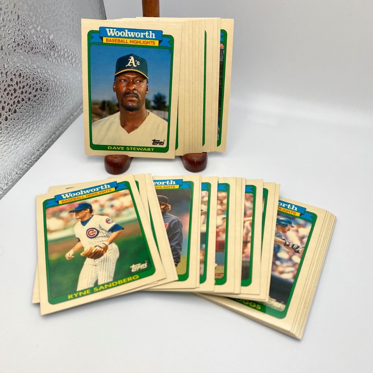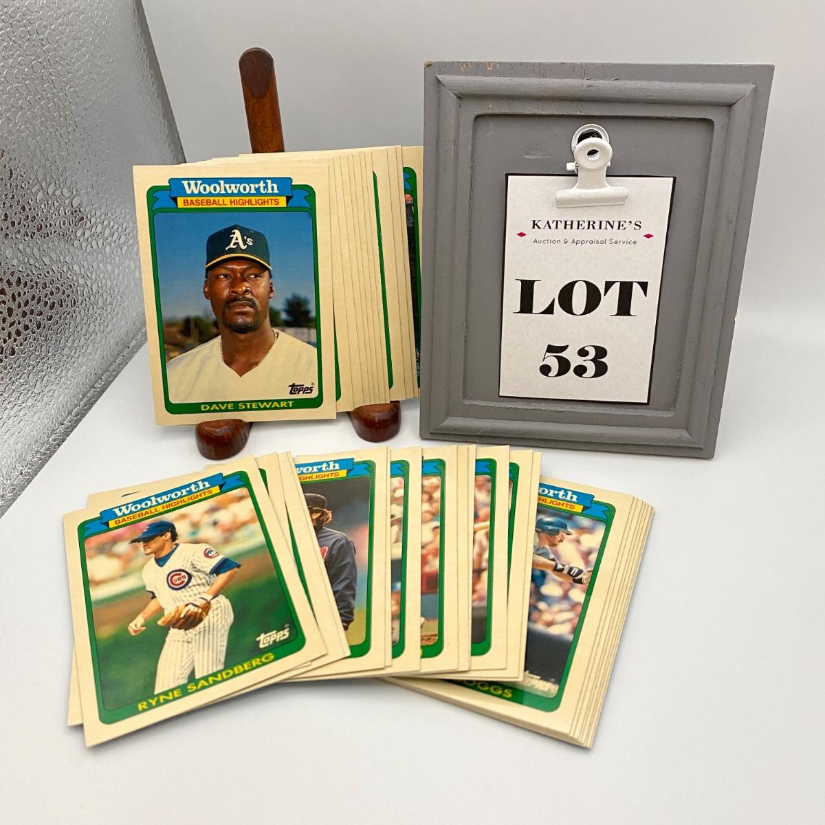 Thirty three 1990 Woolworth cards with no stickers. Please see photos for details and condition. ::: Shipping is available on this lot. If you require shipping you must let us know at the close of the auction. We will coordinate with you after the item has been won. Shipping fees will include insurance up to or exceeding the value of all items being mailed. If you have any questions regarding this lot please contact the auctioneer either via this website, by direct email or by phone. PICK UP TIMES and other important information can be found in the TERMS and DESCRIPTION of the auction. Please take a look for pertinent information. Thanks!