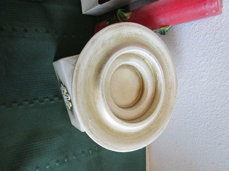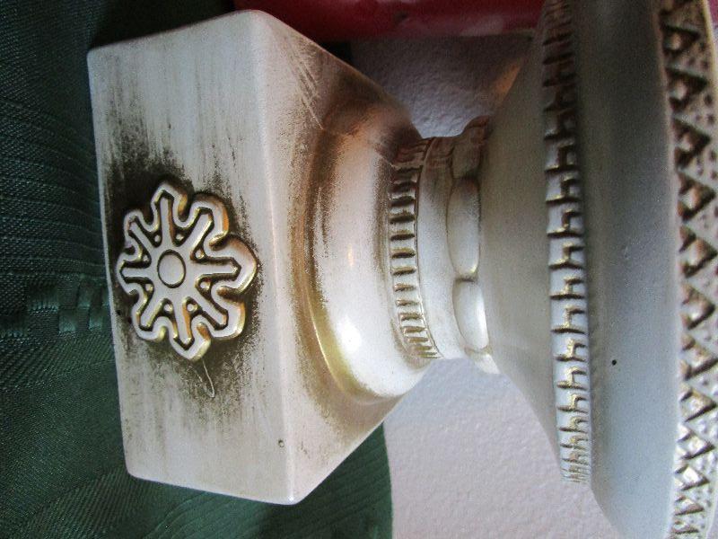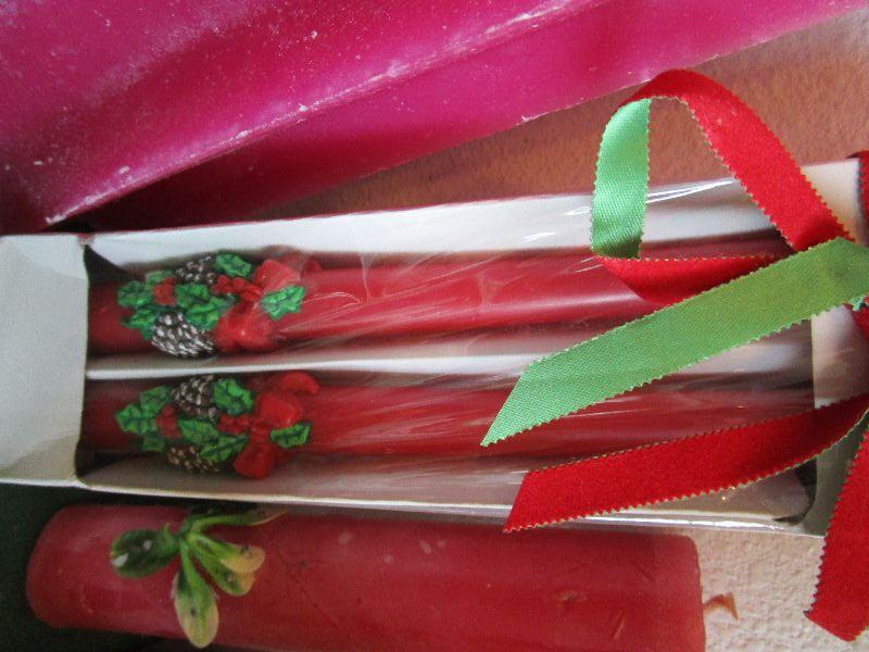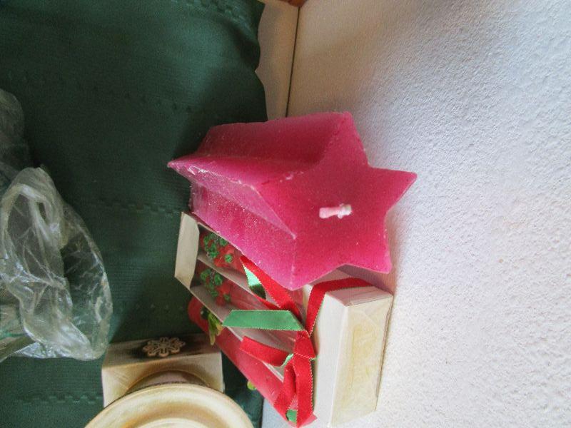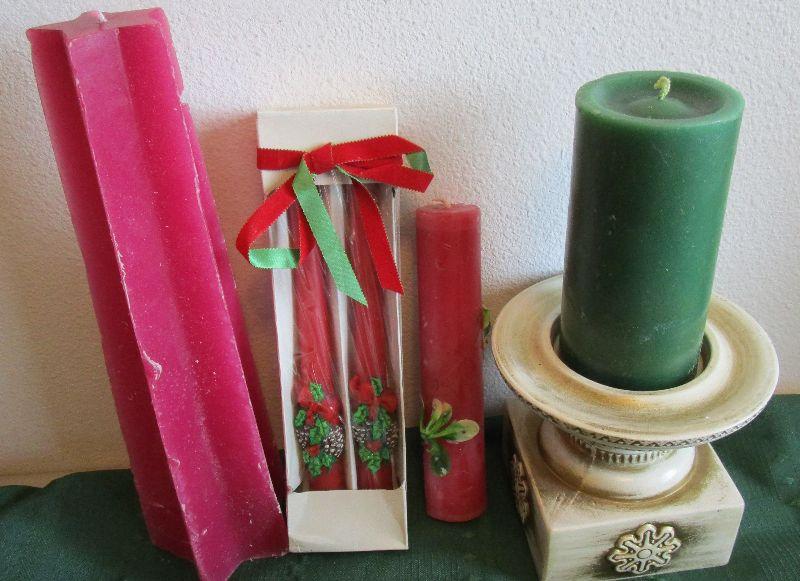 Red Star candle 12 1/2"; candle set 10"; red candle 7 3/4"; Green candle 6"; stand 5 1/2"