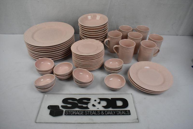53 pieces Large Lot Pink Dishes by JCPenney: Some scratches/chips