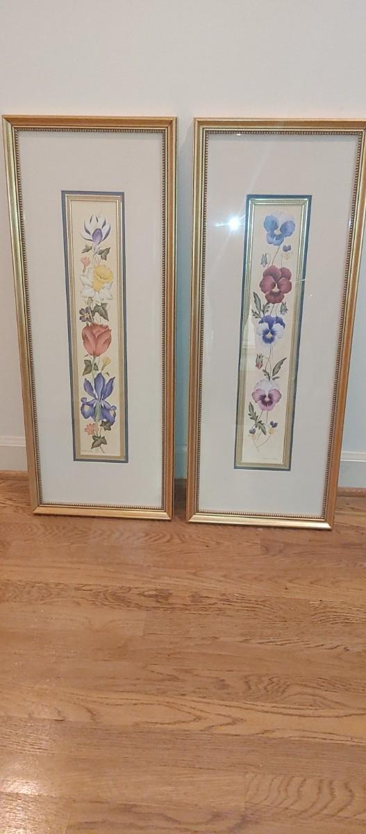 #55  (PR) Nancy Shumaker Pallan Framed Flowers Prints - Signed by The Artist - Set Of 2