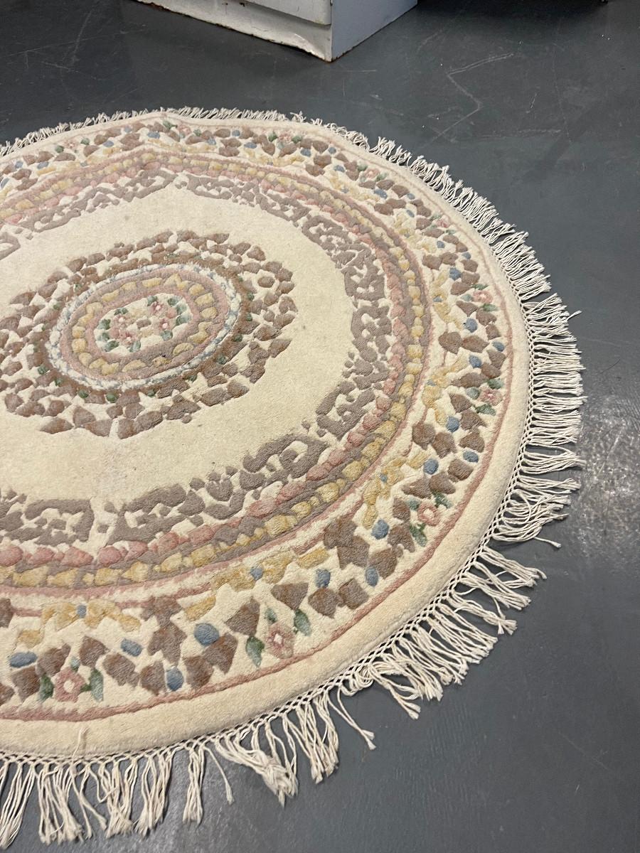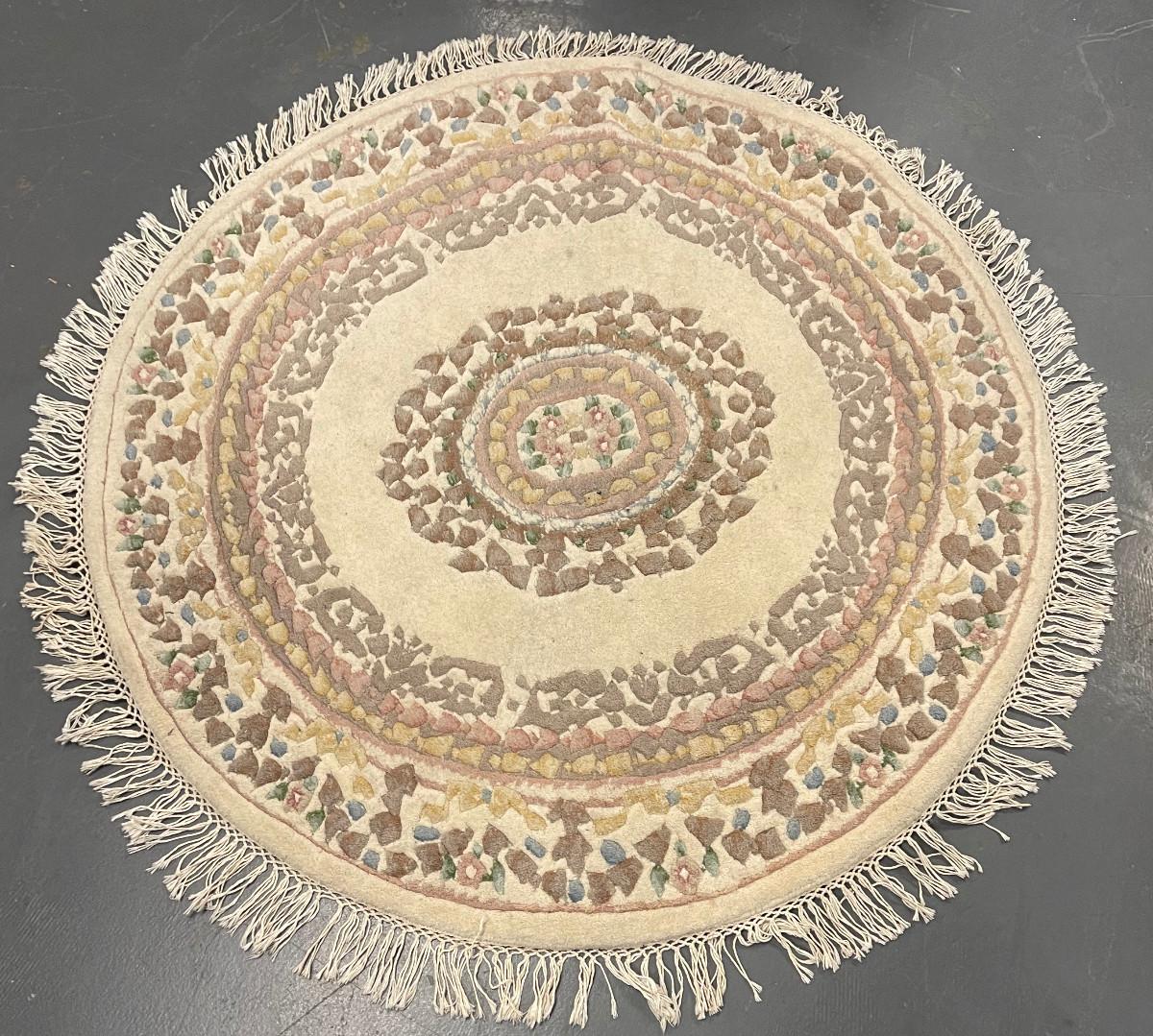 #53 Round Oriental Rug Cream Wool