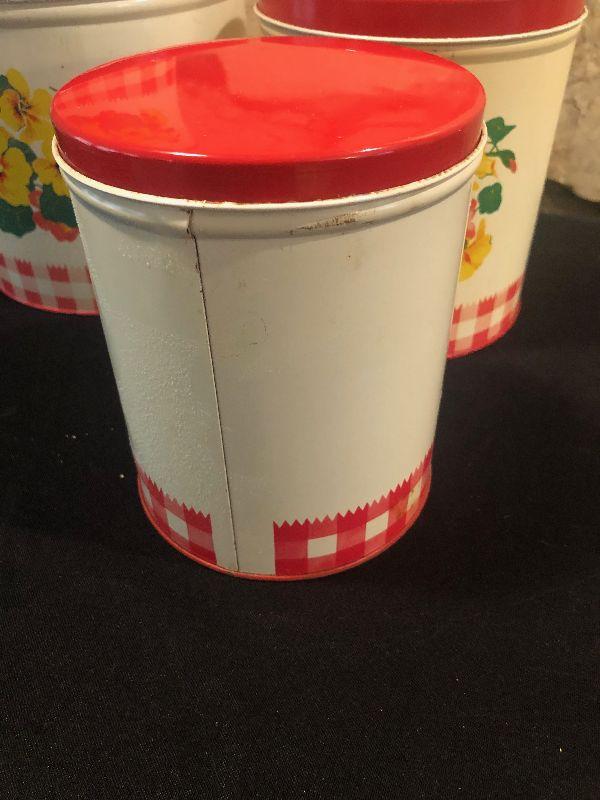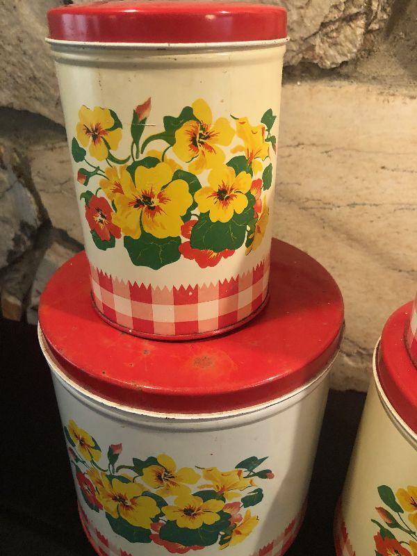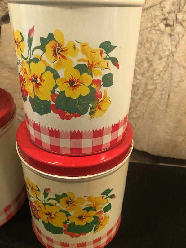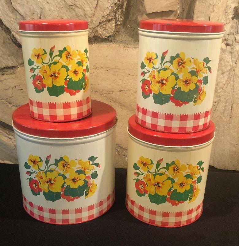 #53 Vintage Tin Canisters with Gingham and Pansy's