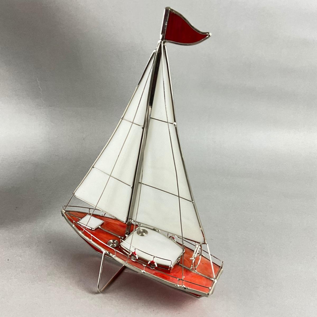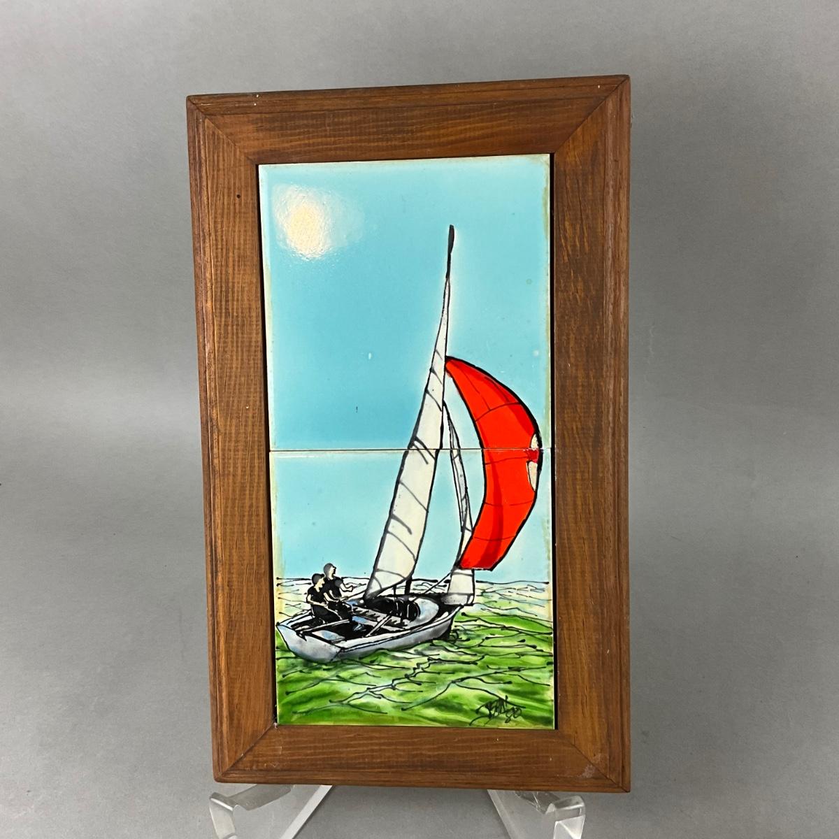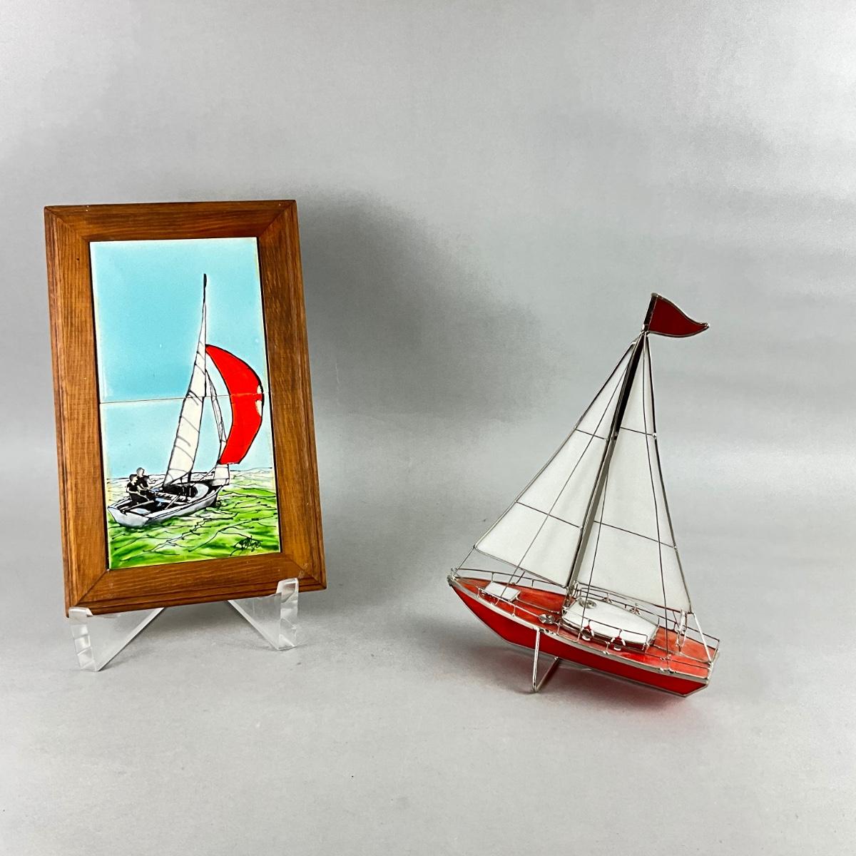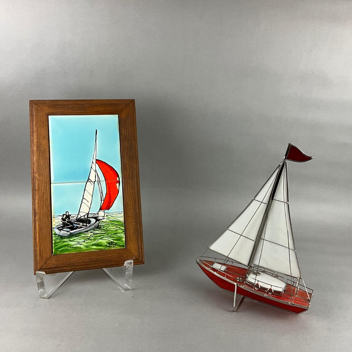 530 Framed Sailboat Tile Picture with Stained Glass Sailboat