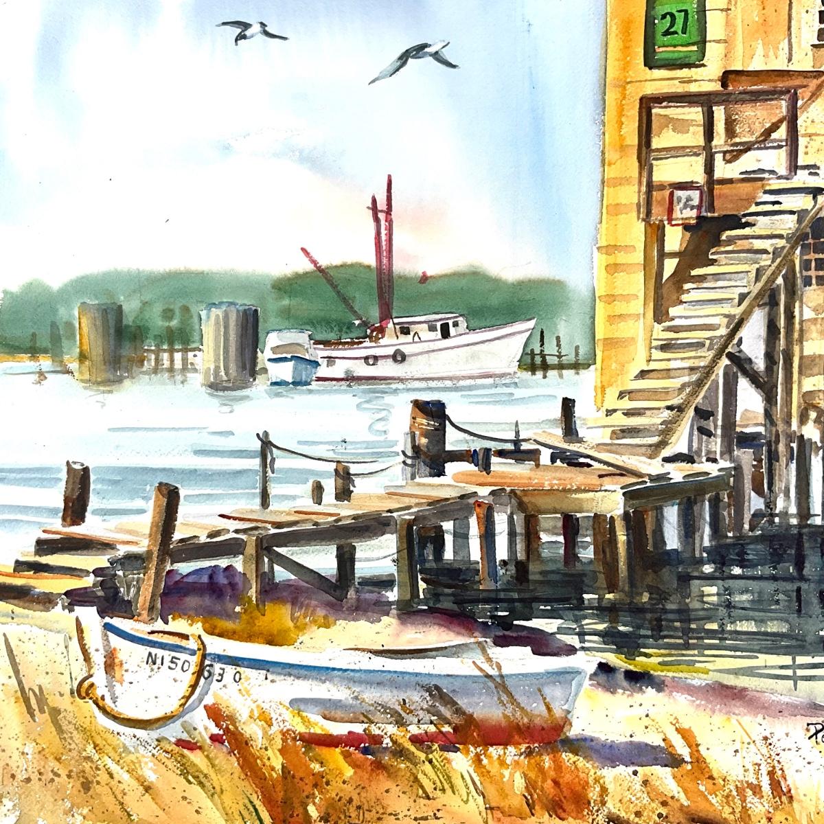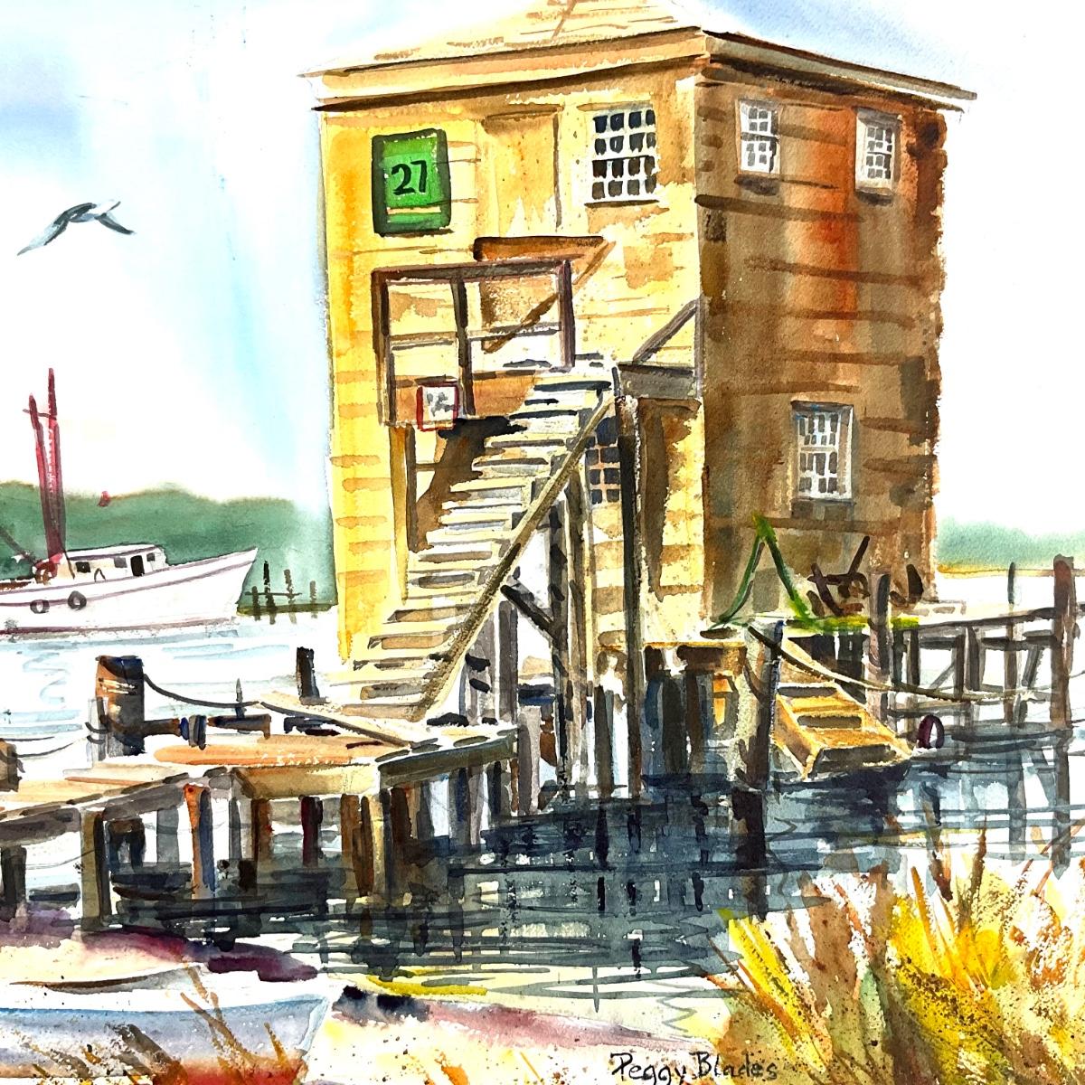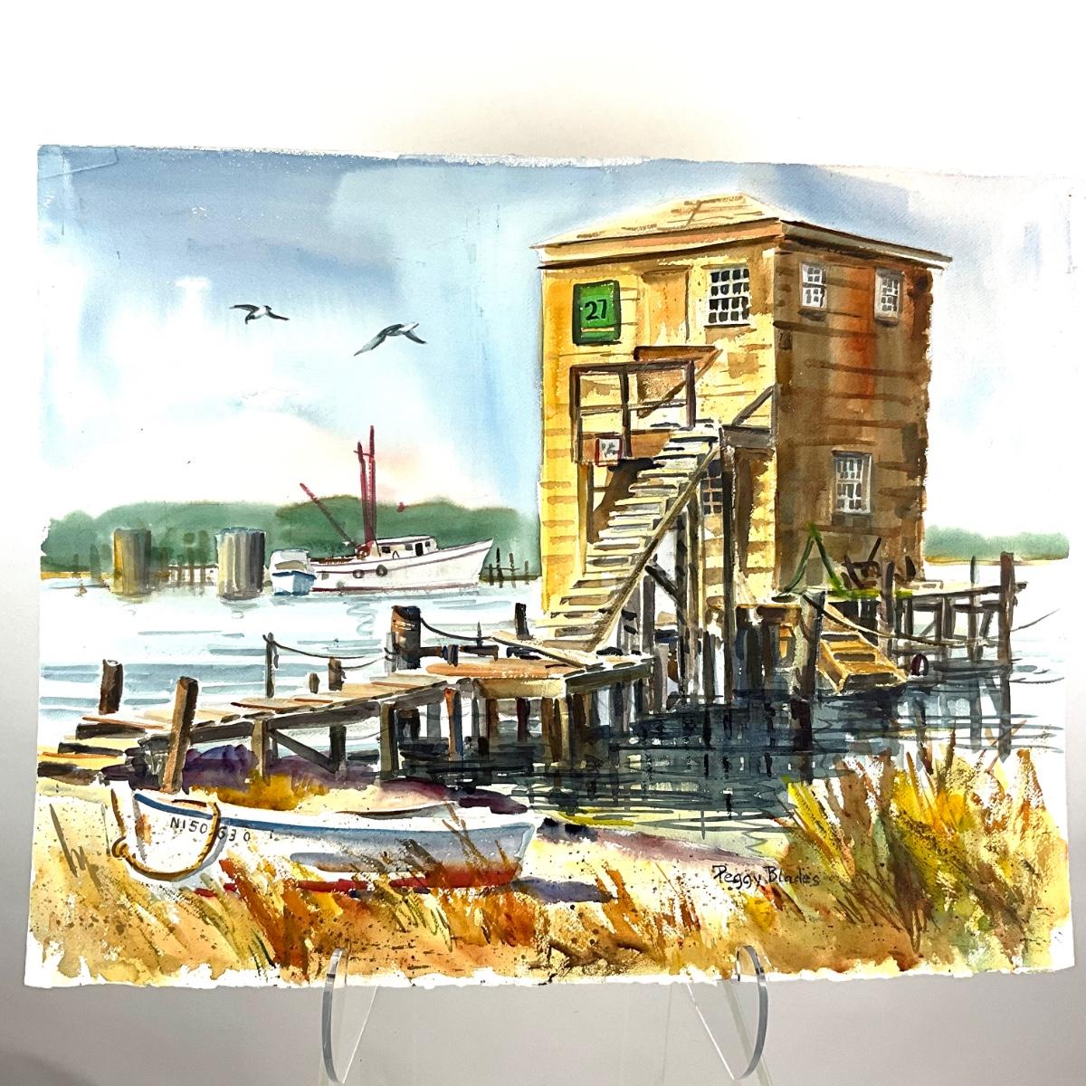 530 Original Watercolor of Fishing Pier by Peggy Blades