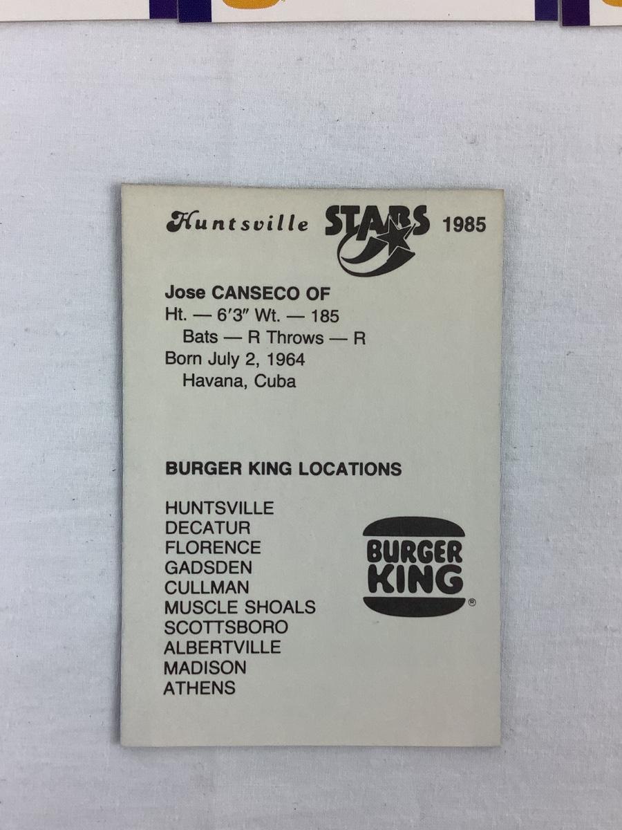 531  Autographed Jose Canseco 1985 Burger King Huntsville Stars Card Set