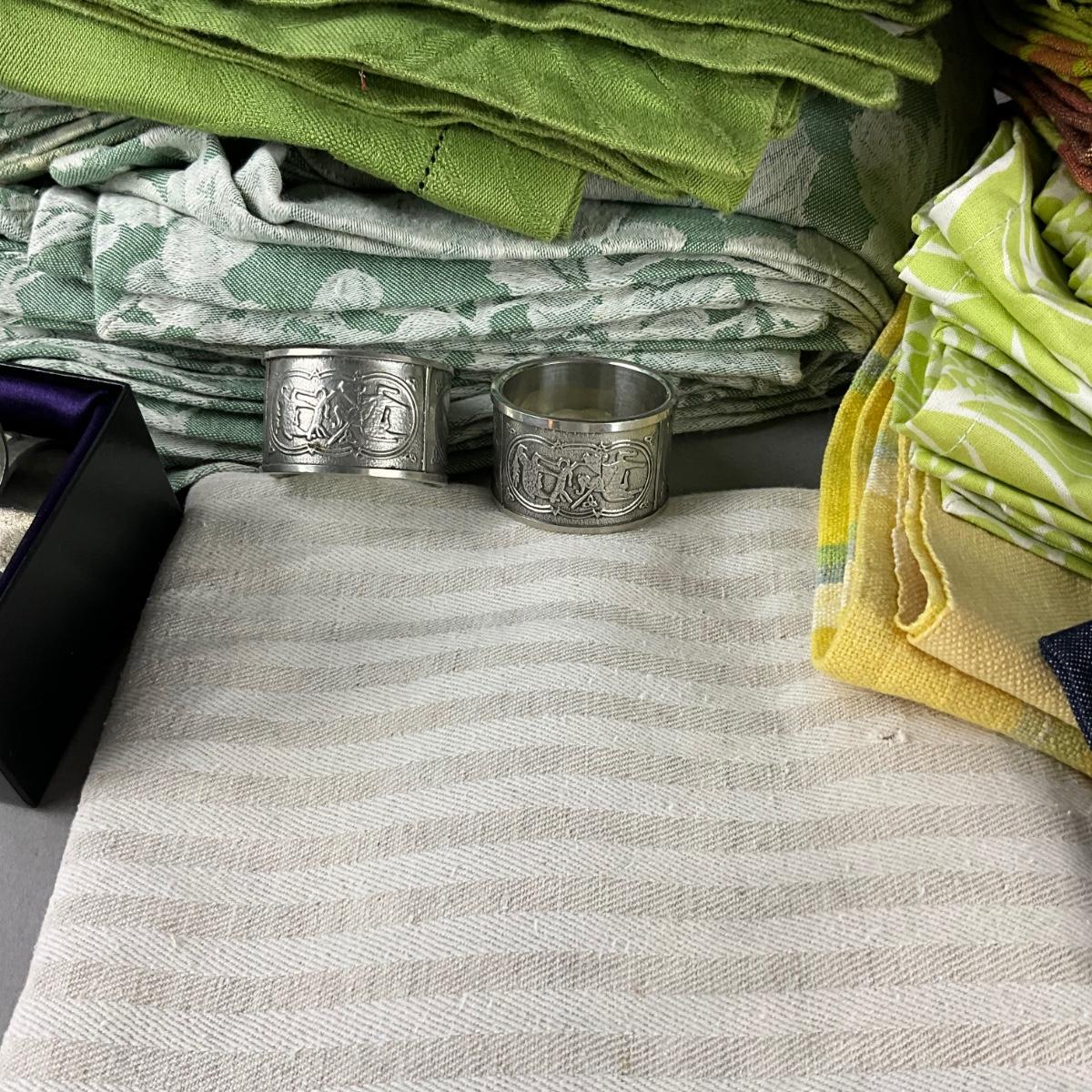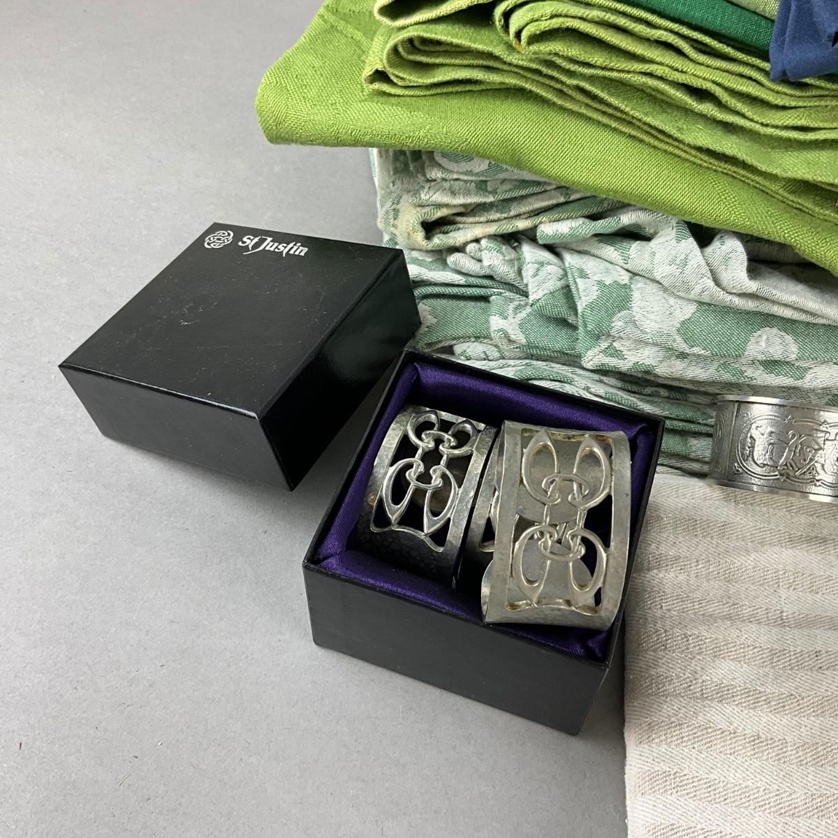 3- St, Justin Napkin Rings and 2 Mullinger Pewter Napkin Rings