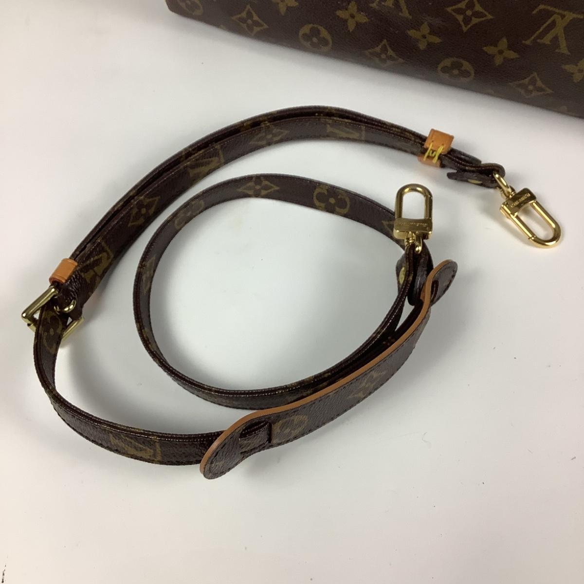 Satchel is authenticated stamped numbers 891 FC, zipper tab is ripped, includes Louis Vuitton strap which was purchased later. Client wanted to have a strap for travel