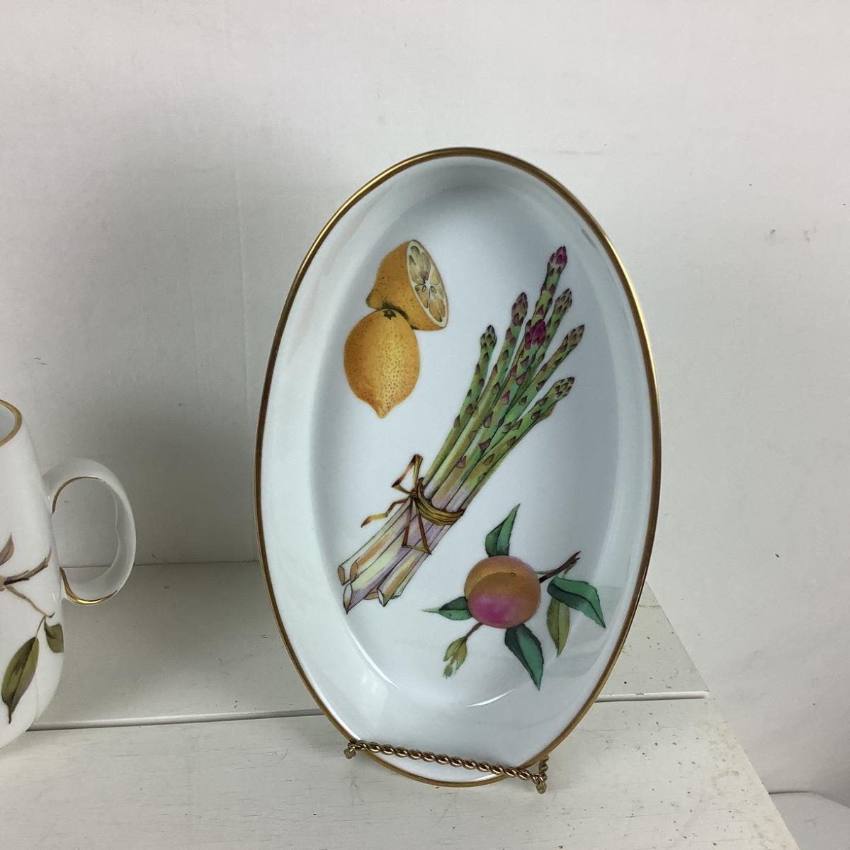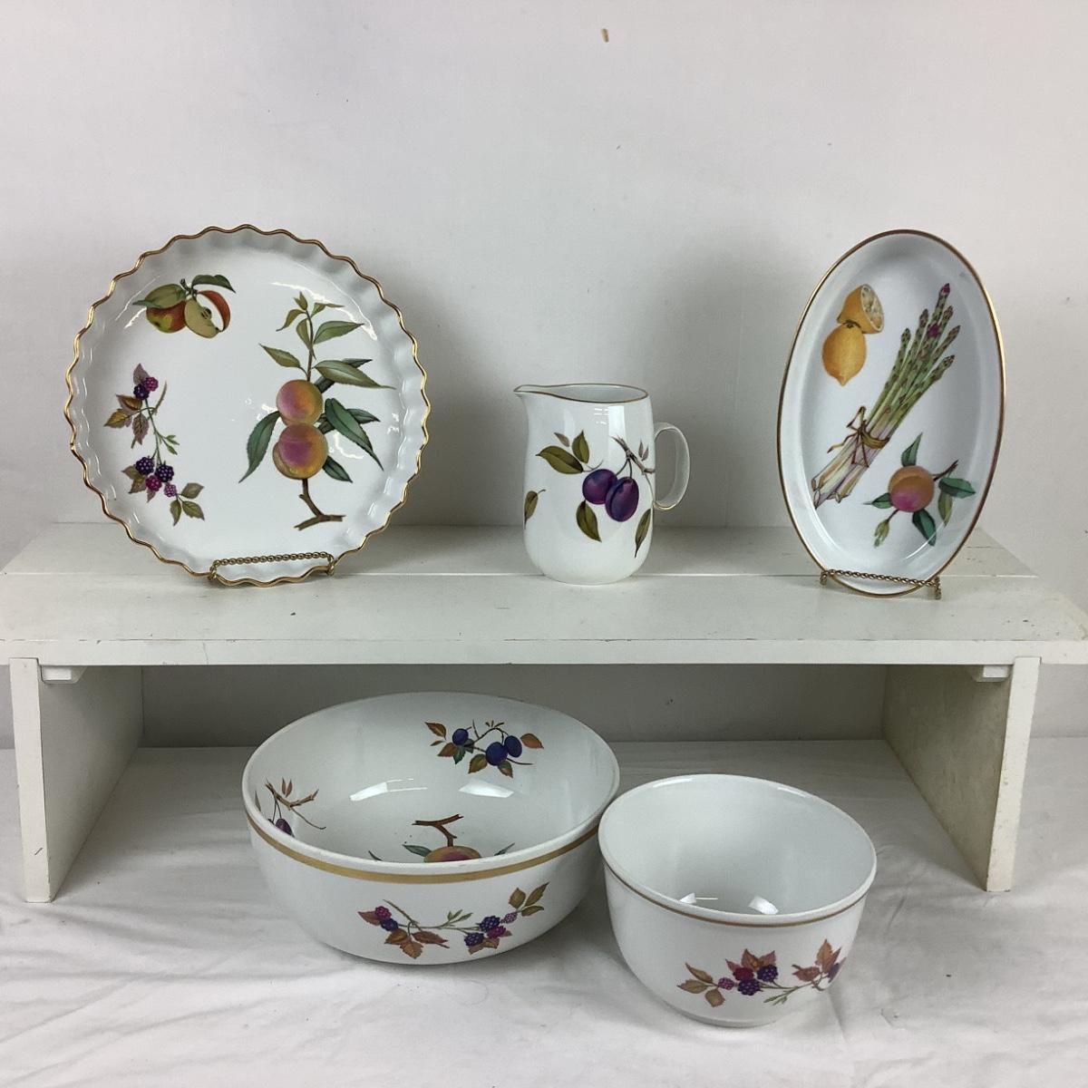 One 10" quiche dish, one cream pitcher, one oval asparagus dish, one 10" round bowl, one 6.75" round bowl