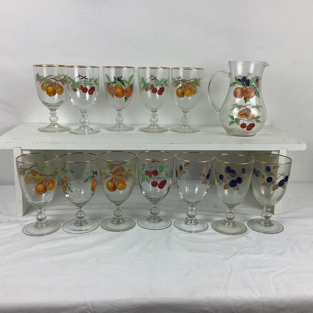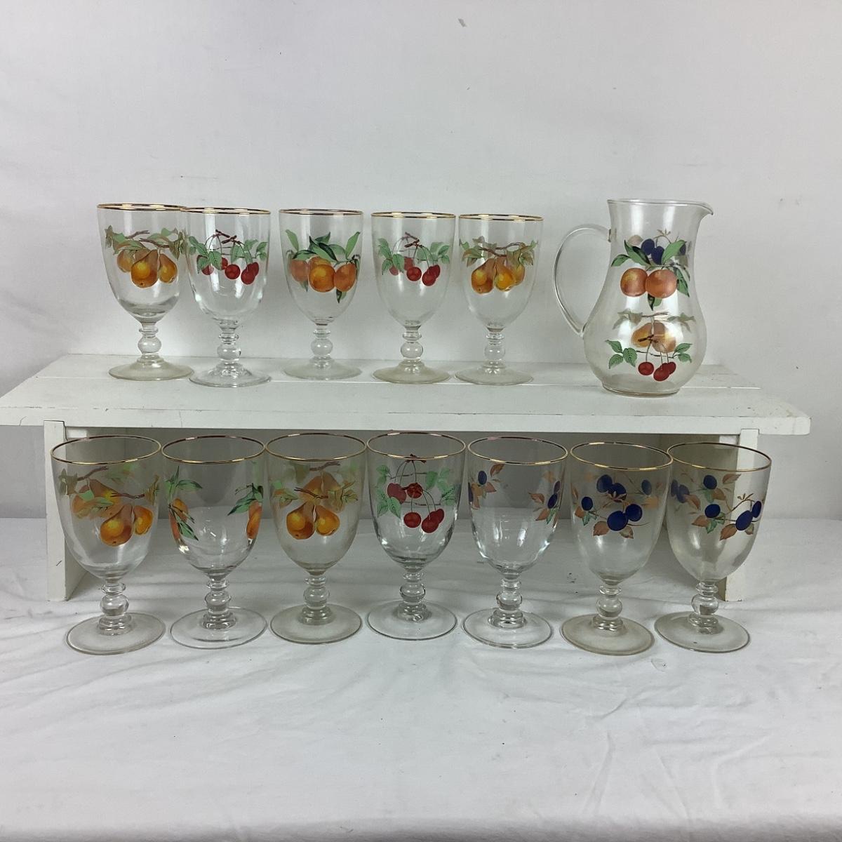 Set of 12 ice tea glasses and one pitcher in the Evesham pattern