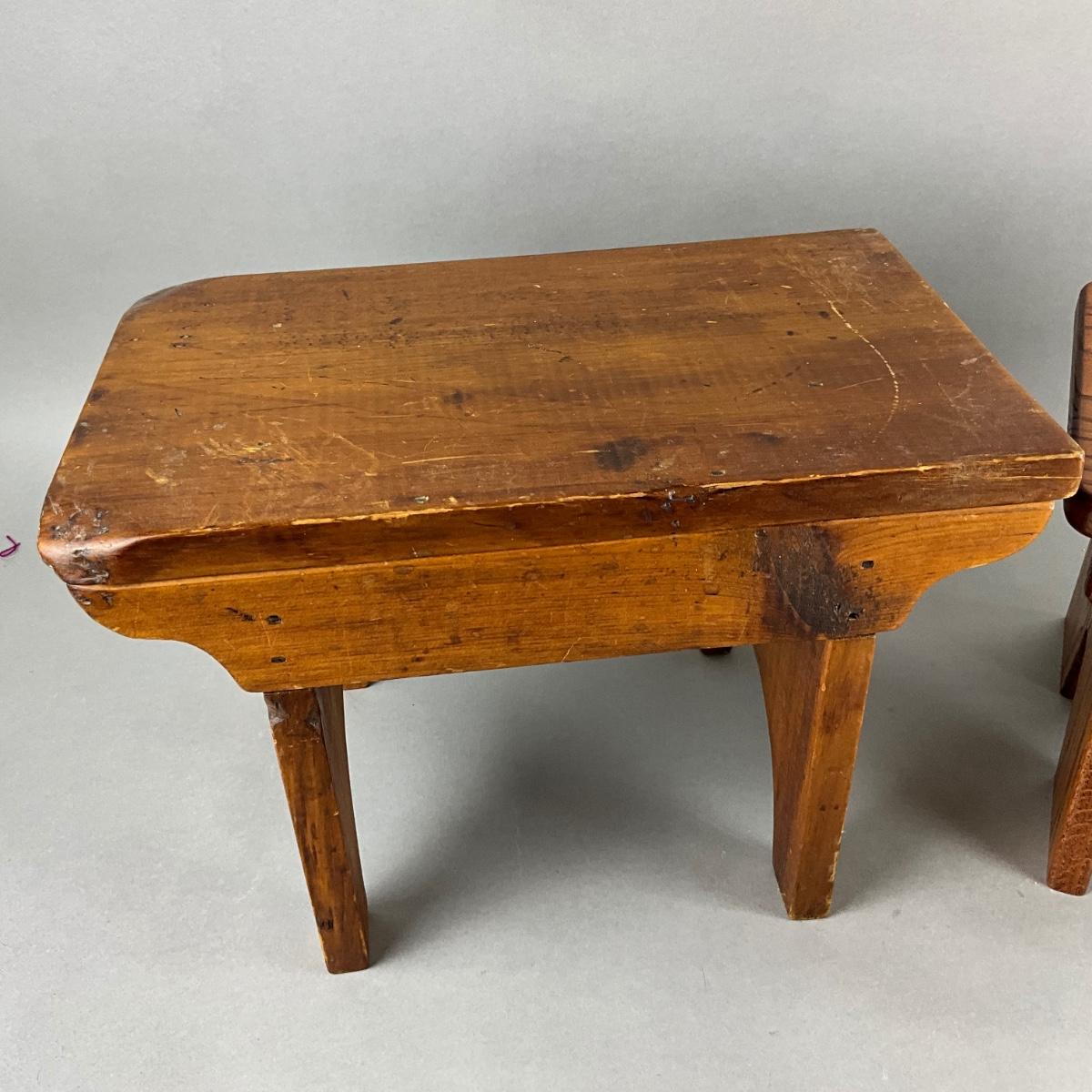Pine stool measures 9.75" deep x 15.75" wide x 10" high