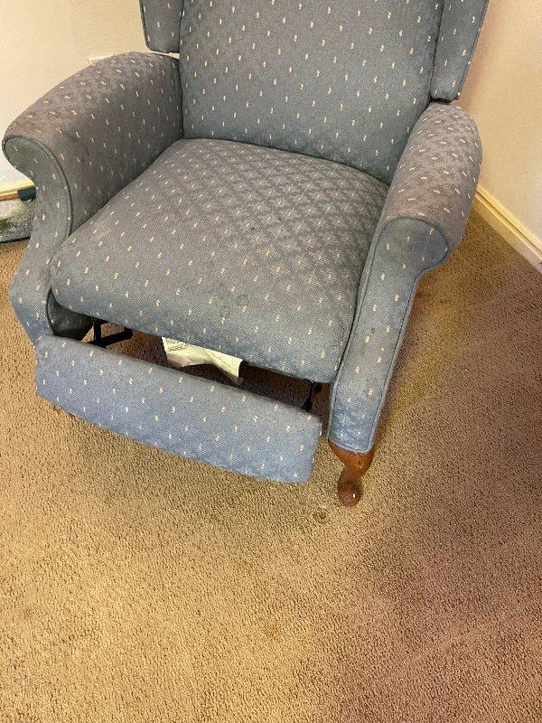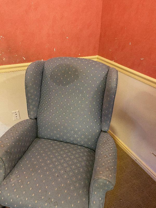 #534 B Wing Back Recliner with Spot on Fabric