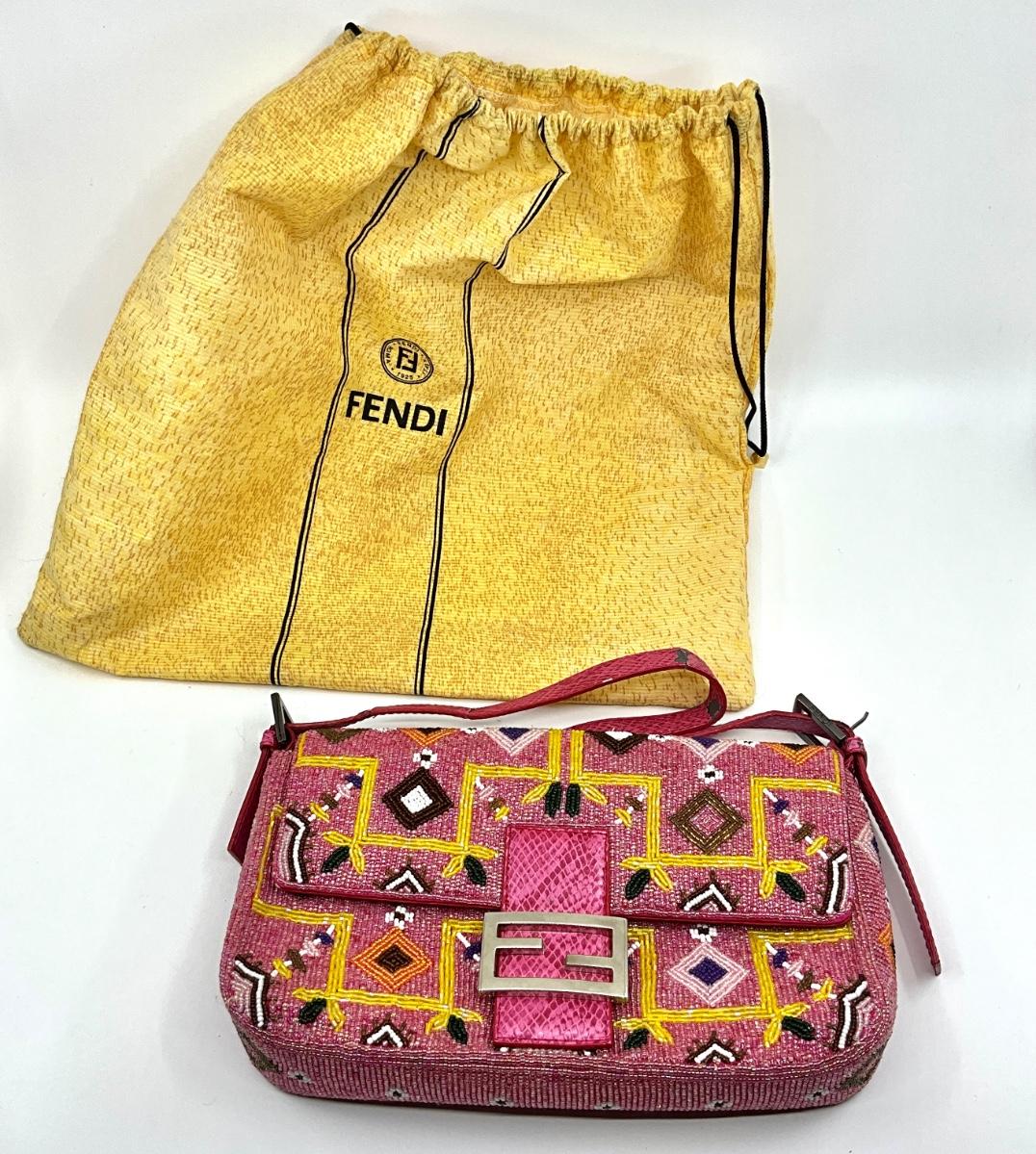 534 FENDI As Is Pink Beaded Baguette Bag