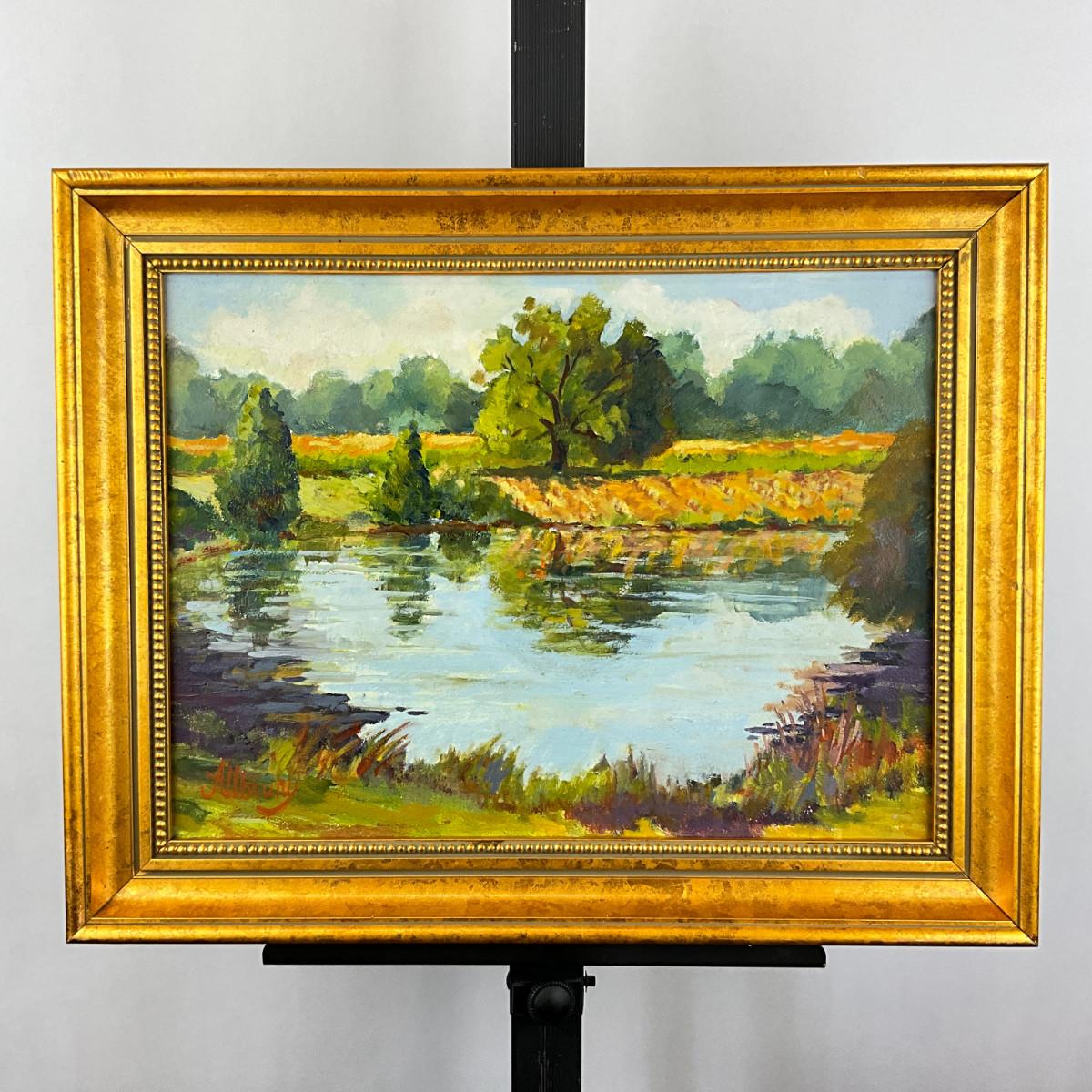 534 Signed Oil On Board Pond & Landscape