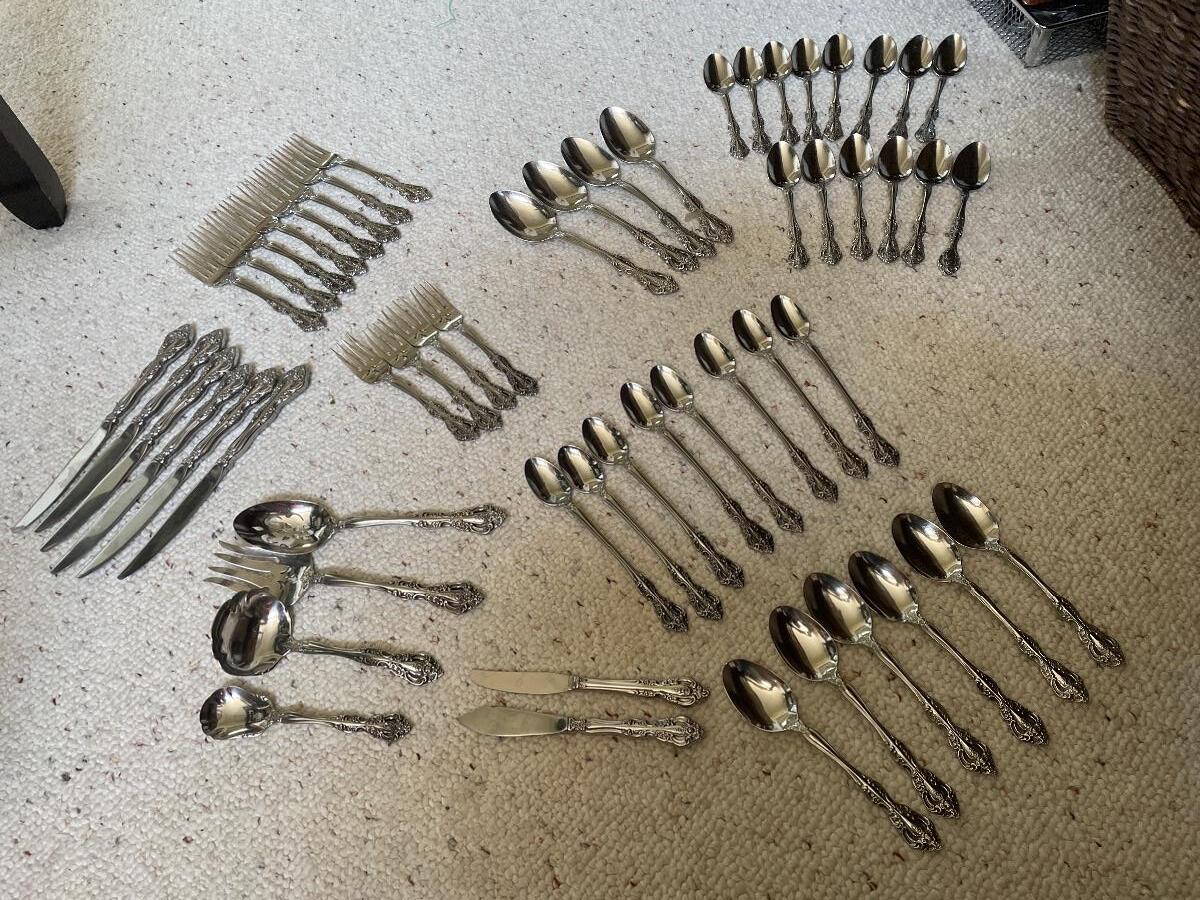 #534 Vintage ONEIDA Stainless Ornate Flatware Set of 56