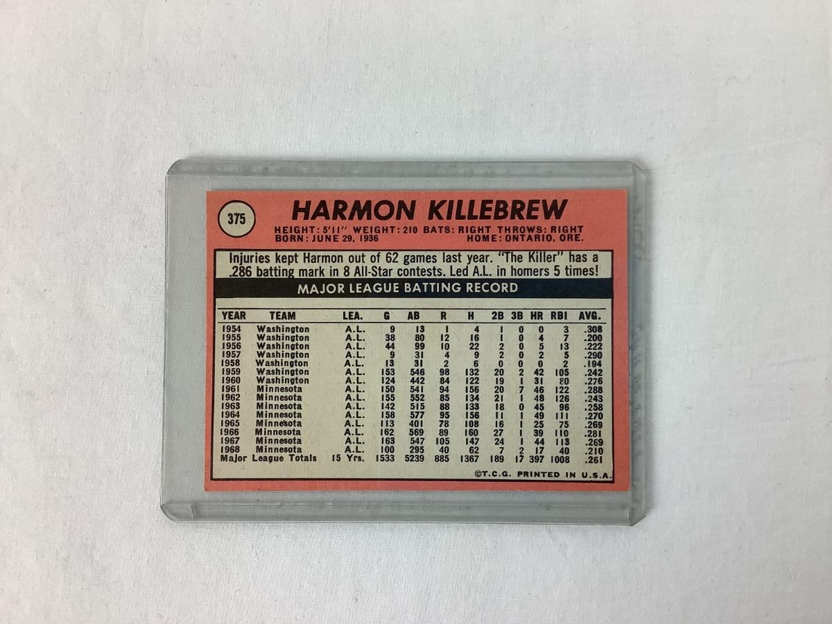 Vintage 1969 Topps Chewing Gum Harmon Killebrew, Minnesota Twins #375 Baseball Card