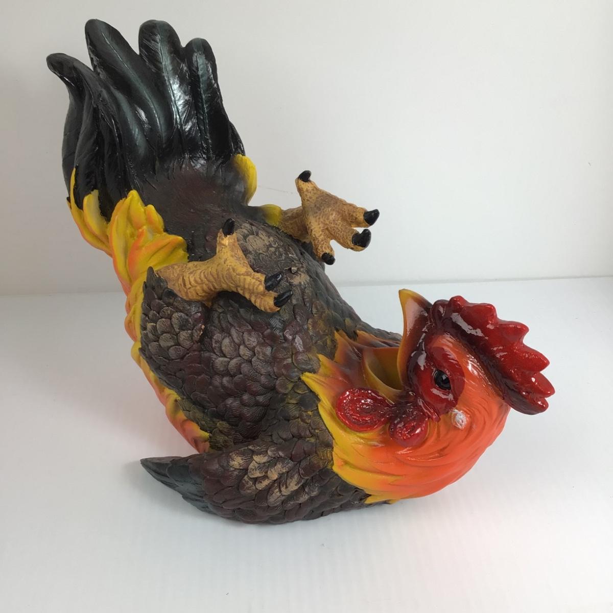 The rooster holds one bottle of wine and it measures 12” x 9” x 6”.