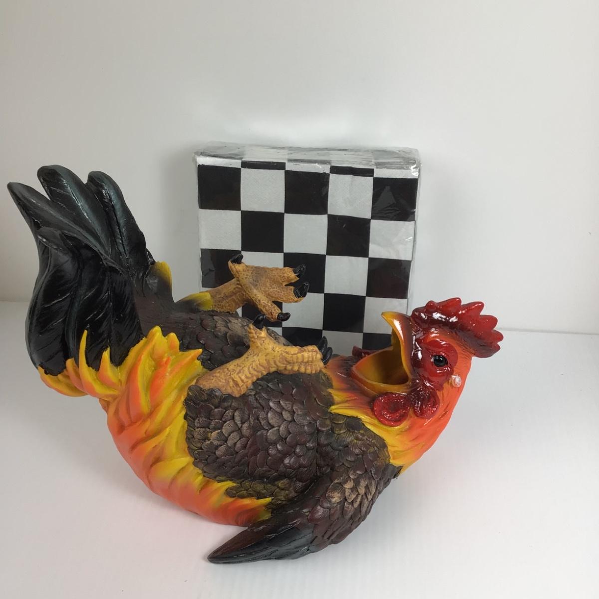 536 Large Rooster Wine Bottle Holder & Check Napkins