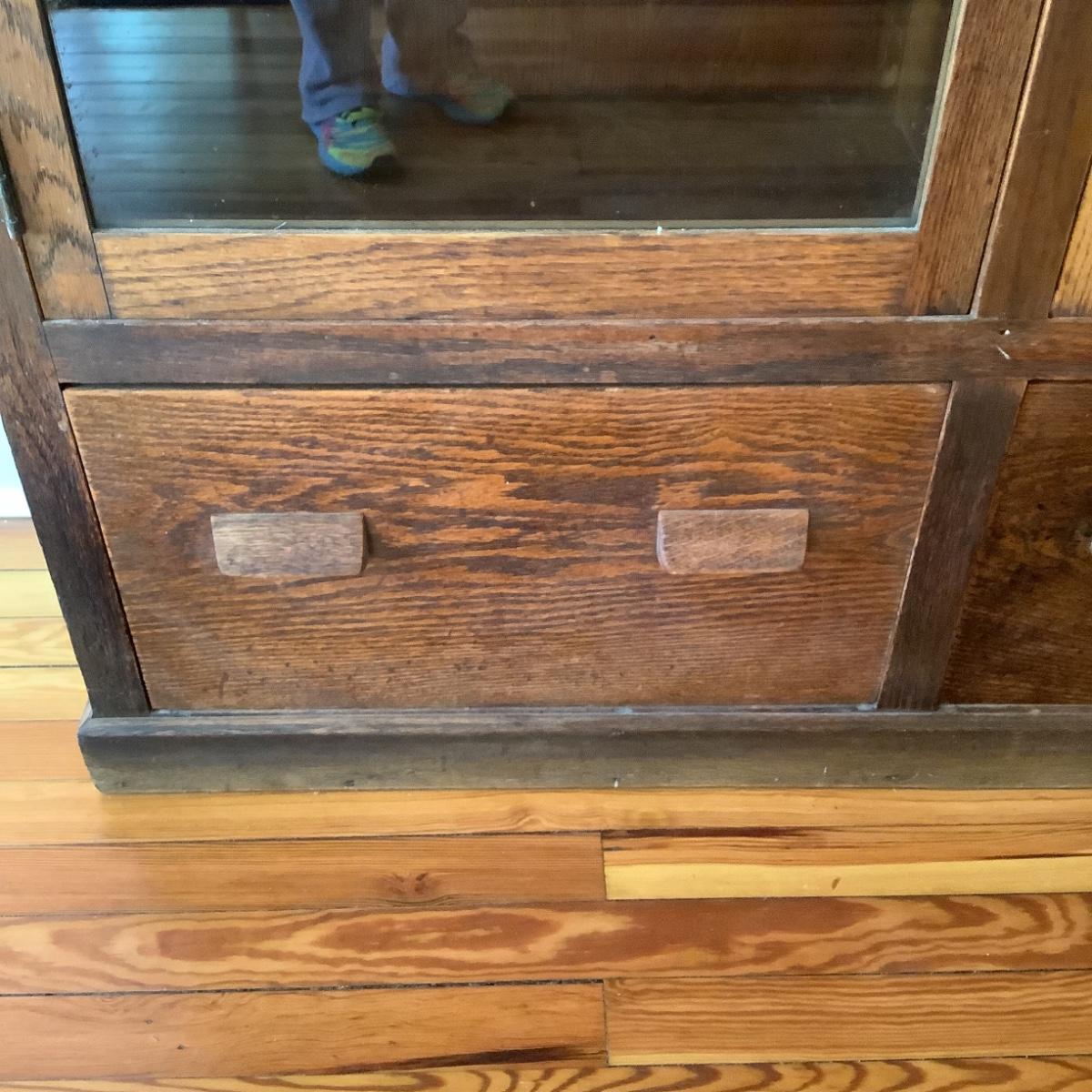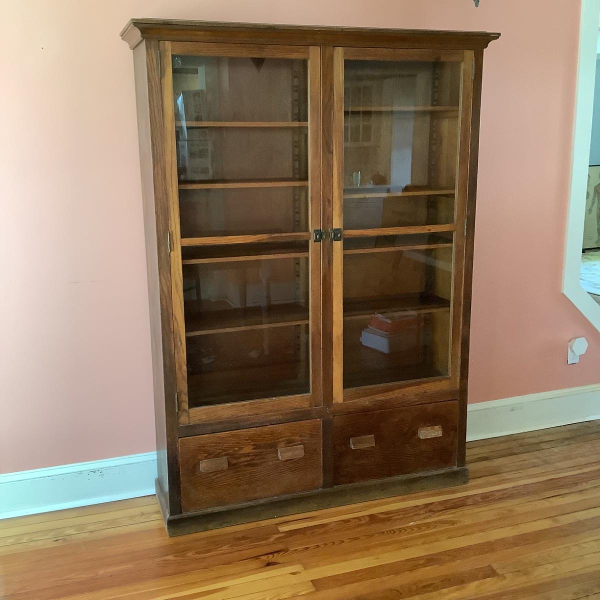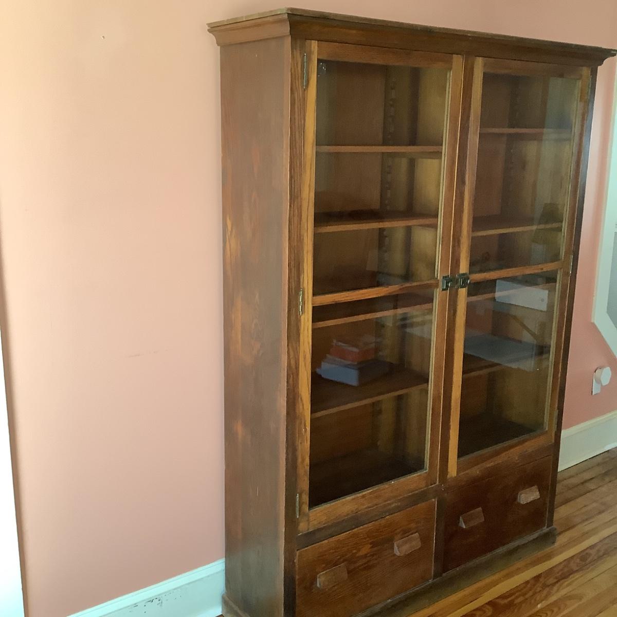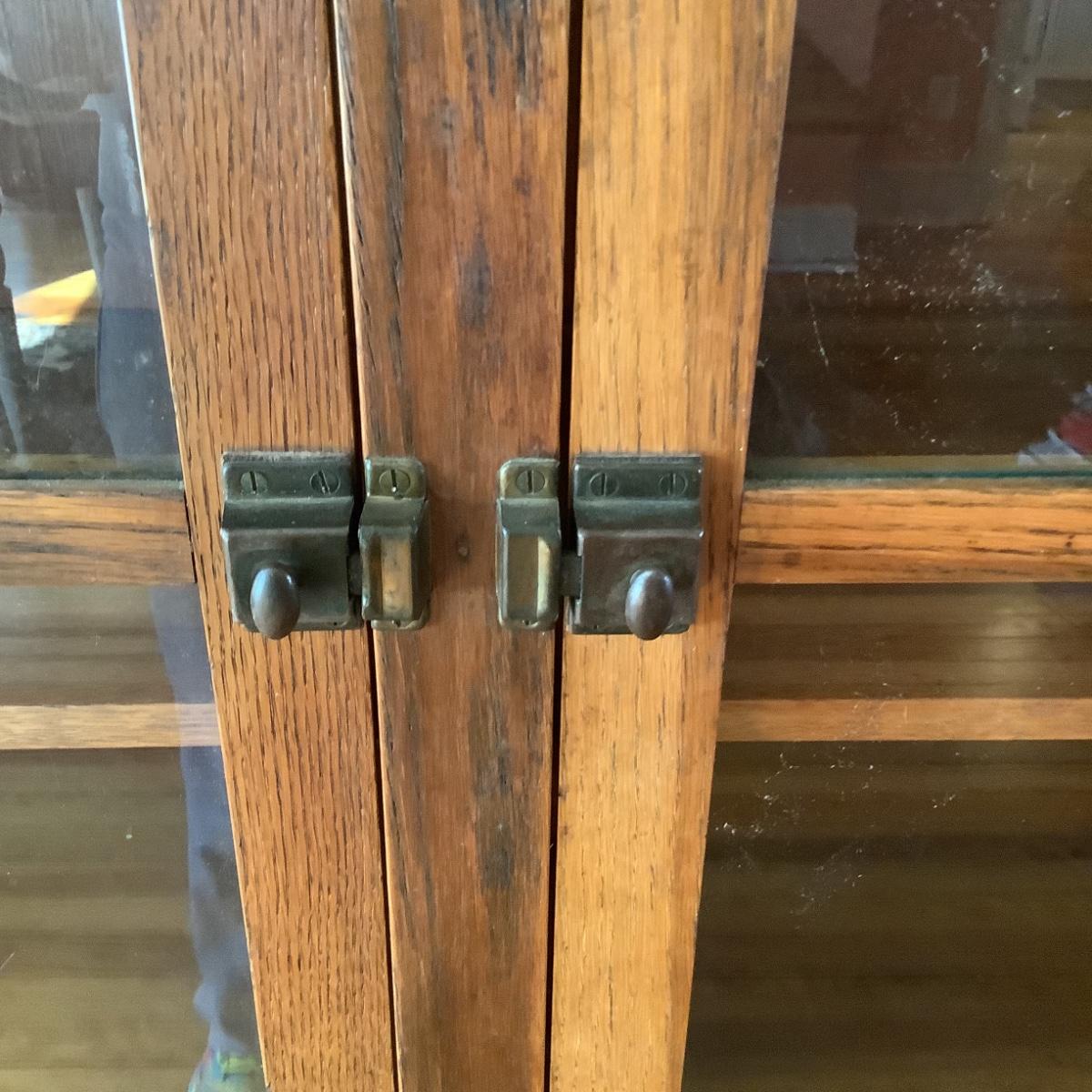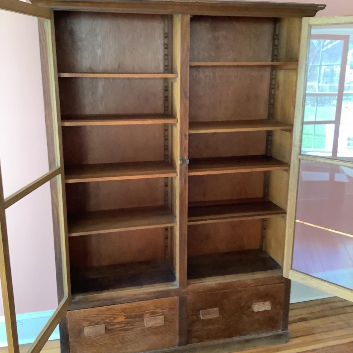 H537 Vintage Oak Glass Door Book Case Early 20th Century