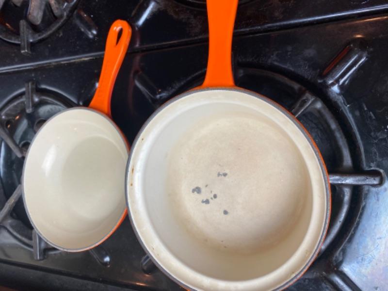 538: Le Creuset Cast Iron Sauce Pan with Two and One Pot