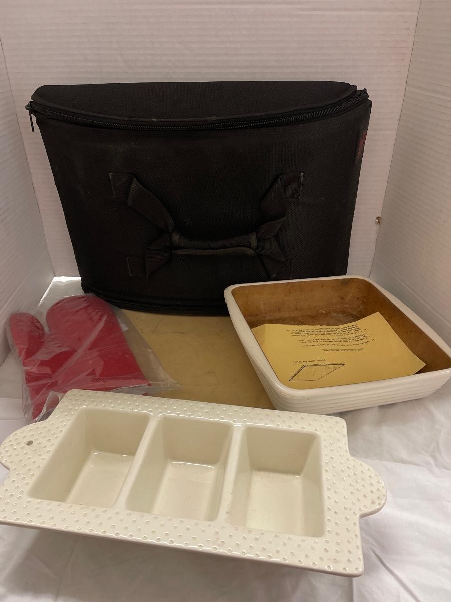 F538 Lot of Pampered Chef Baking Stone, Casserole, Carrier