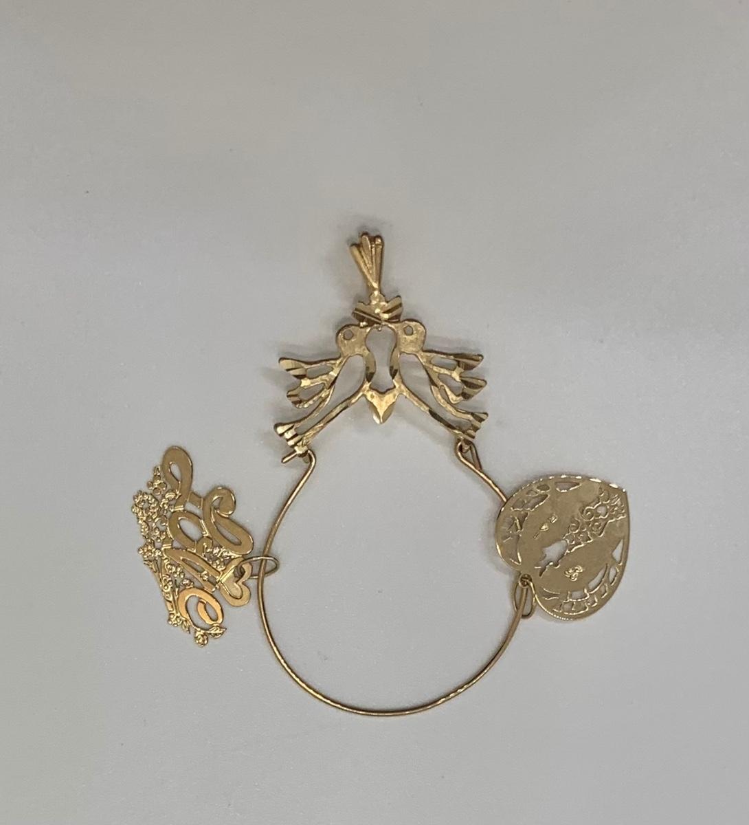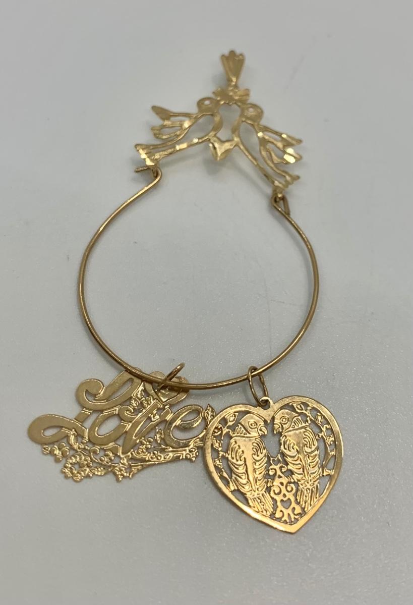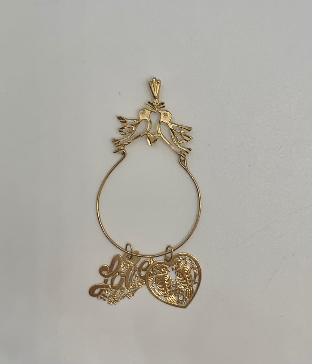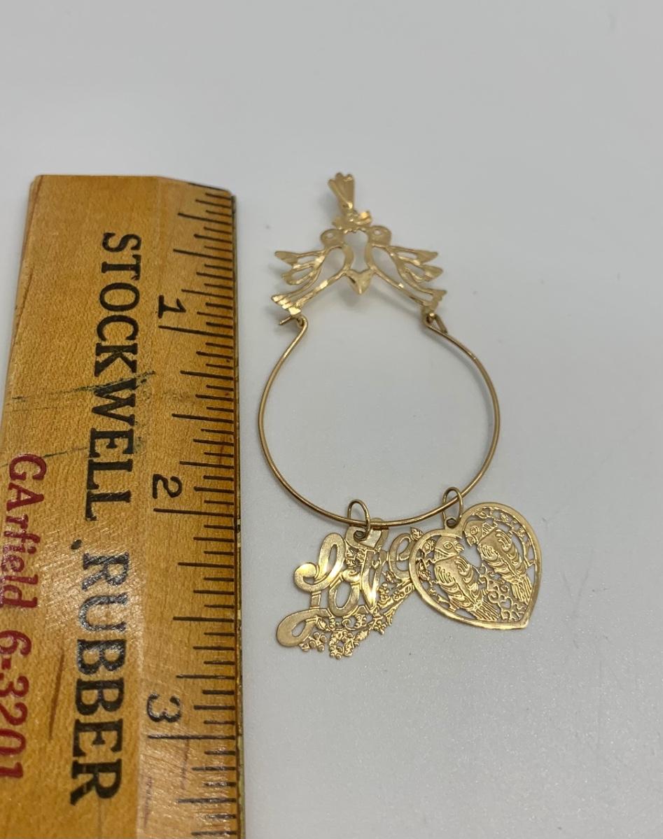 54: Vintage 14K lovebirds Pendant Charm holder with 2 charms
