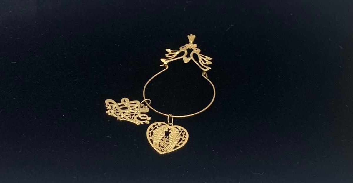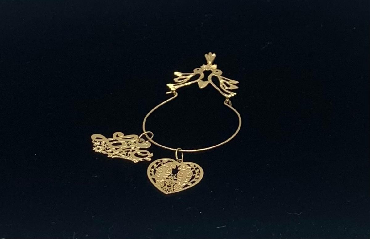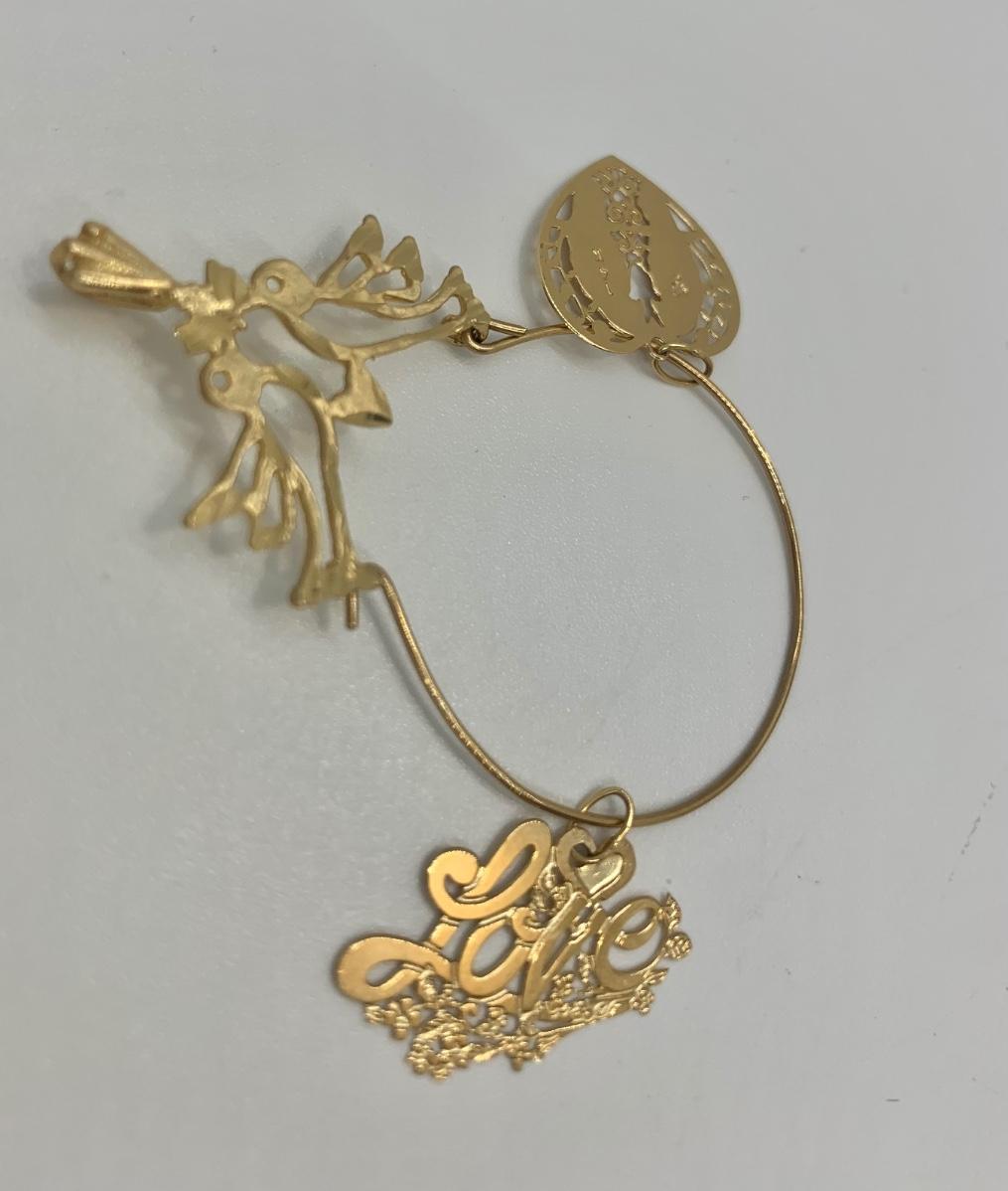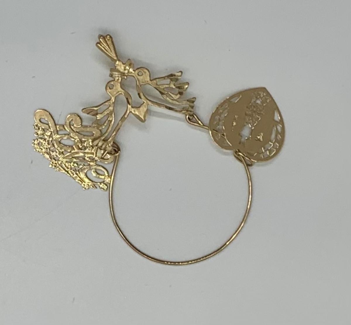 54: Vintage 14K lovebirds Pendant Charm holder with 2 charms