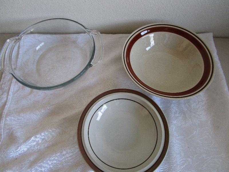 #54 Anchor Hocking Dish, and 3 serving bowls