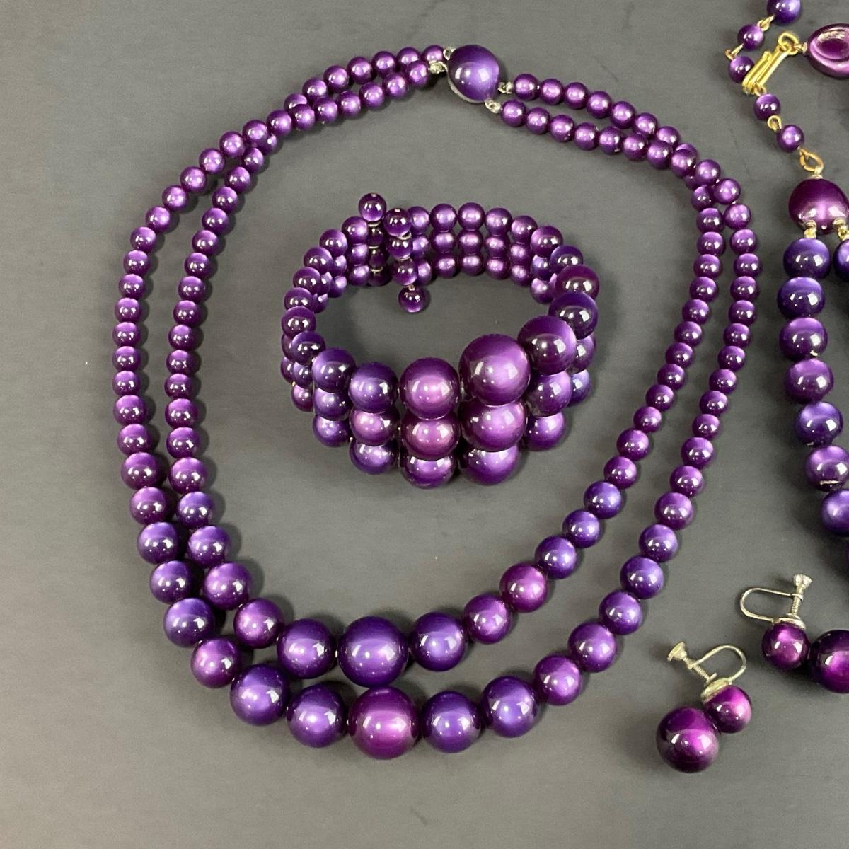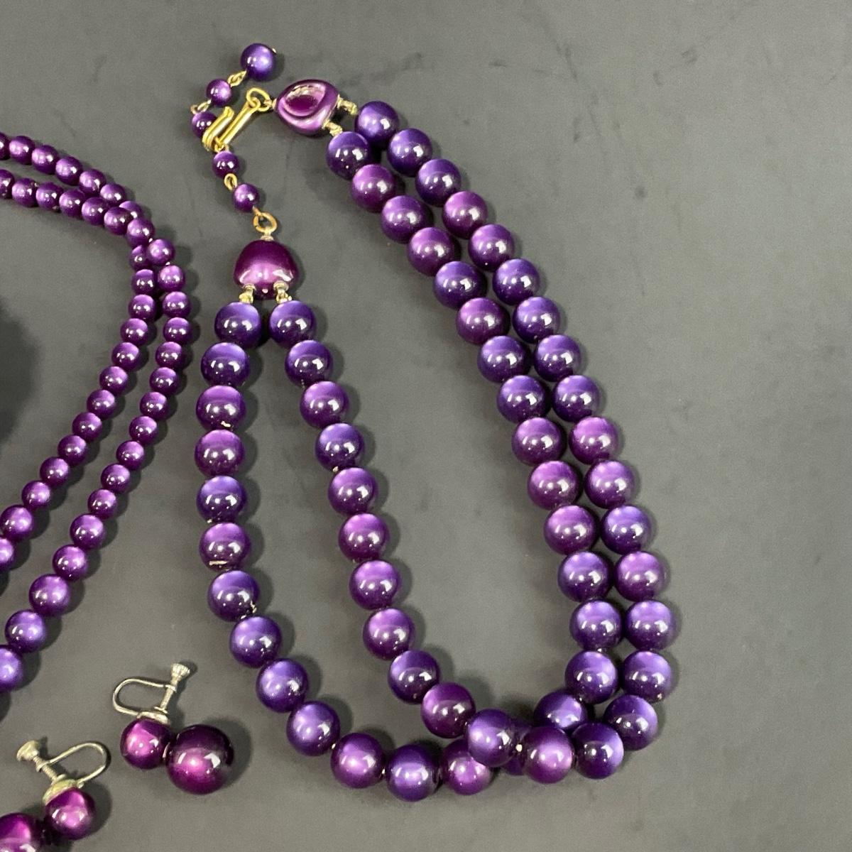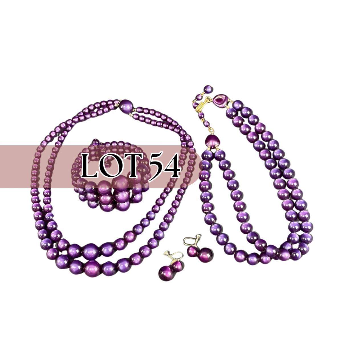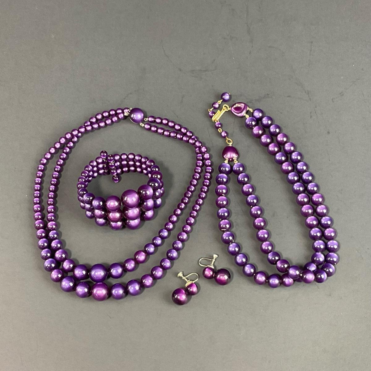 One vintage Richelieu Moonglow set including one Crocker necklace, one necklace, one bracelet, and one pair of earrings. This piece does have some scuffs, scratches, marks, or slight damage, but otherwise appears to be in great shape. Please see photos for details and condition. Any condition statement is given as a courtesy to a client, is an opinion, and should not be treated as a statement of fact. Reference to condition written, oral or within a condition report shall not be regarded as a full account of condition and may not include all defects, alterations, or restorations. Absence of a condition report does not imply a lot is flawless or lacking imperfections or damage. Katherine’s Auction & Appraisal Service shall have no responsibility for any error or omission. Returns shall not be accepted on the basis of condition. ::: Shipping is available on this lot. If you require shipping you must let us know at the close of the auction. We will coordinate with you after the item has been won. Shipping fees will include insurance up to or exceeding the value of all items being mailed. If you have any questions regarding this lot please contact the auctioneer either via this website, by direct email or by phone. PICK UP TIMES and other important information can be found in the TERMS and DESCRIPTION of the auction. Please take a look for pertinent information. Thanks!