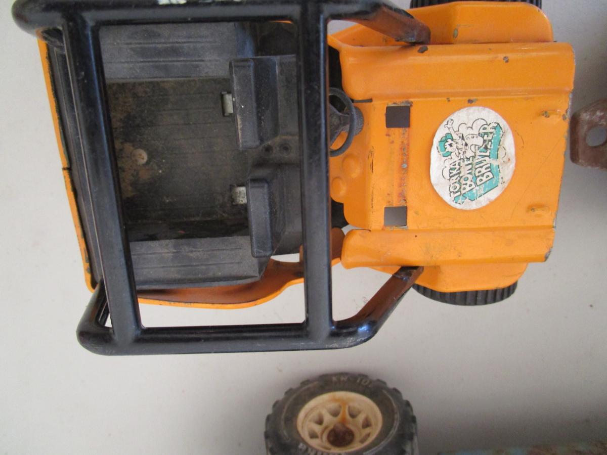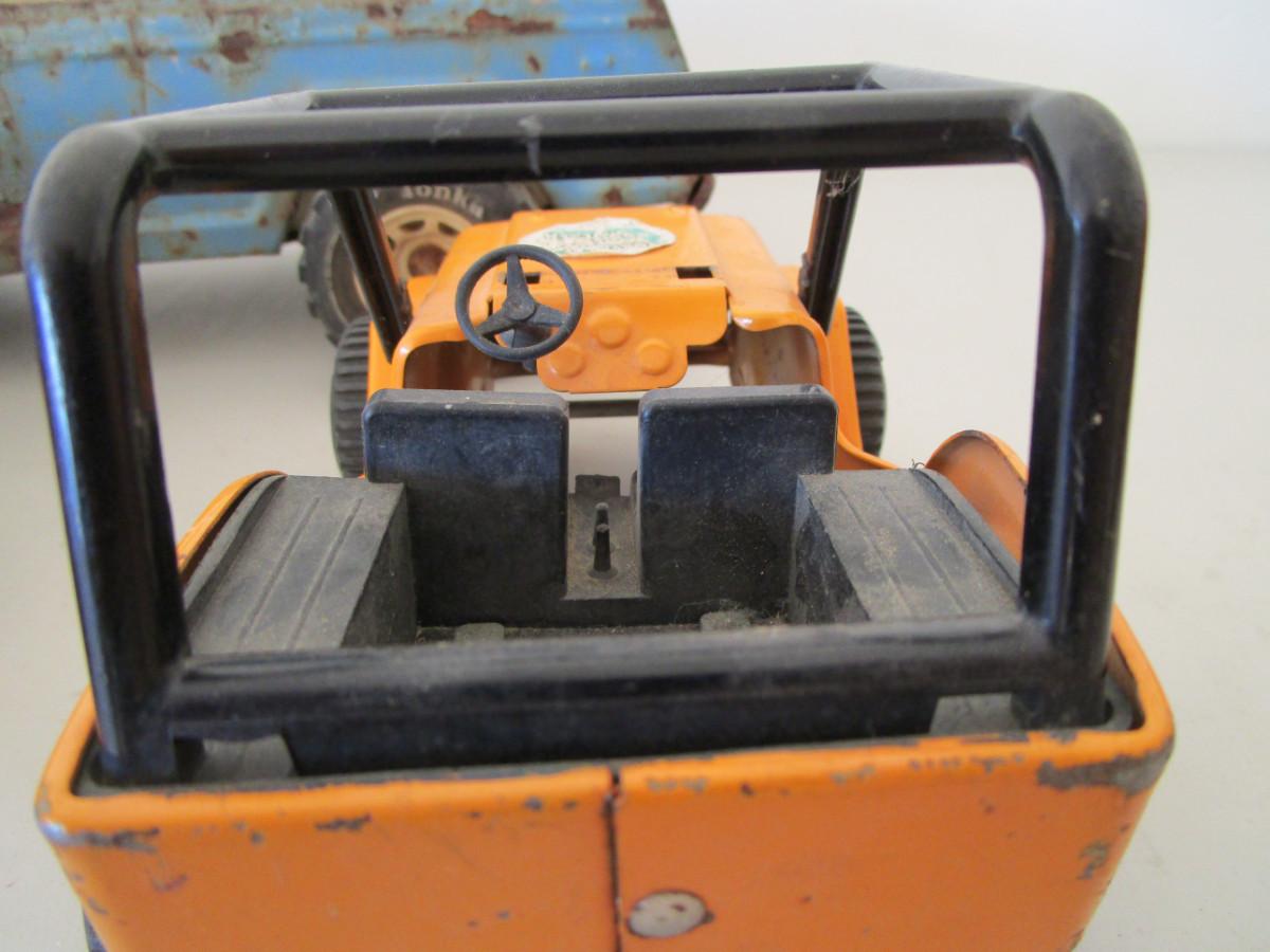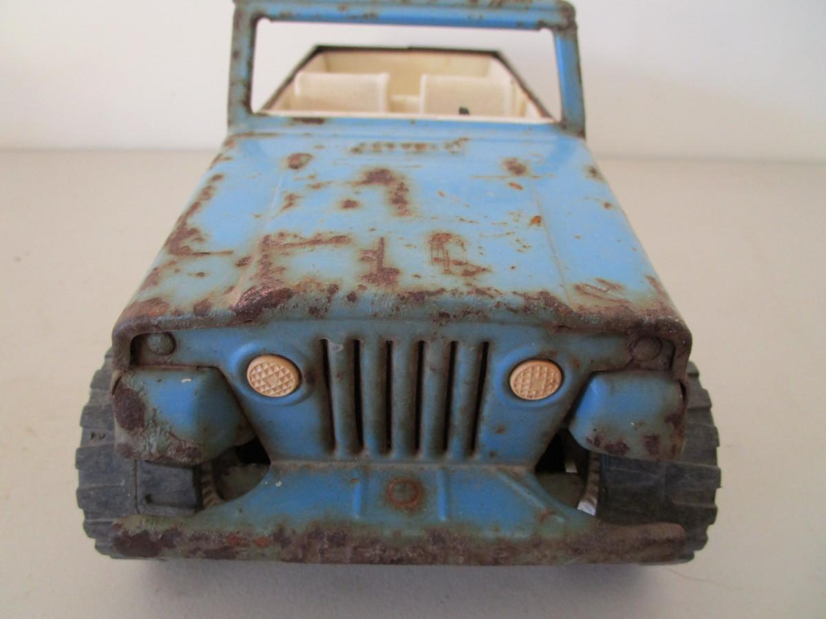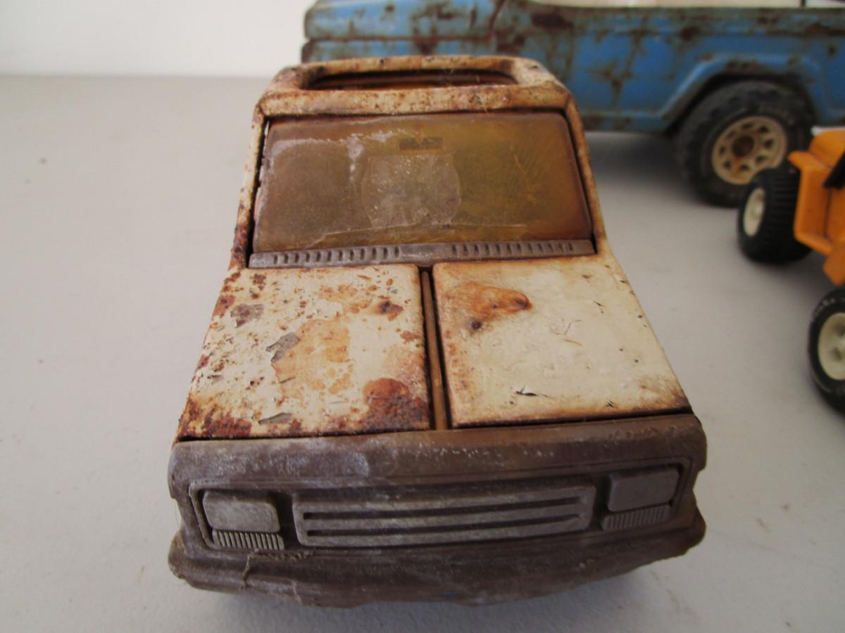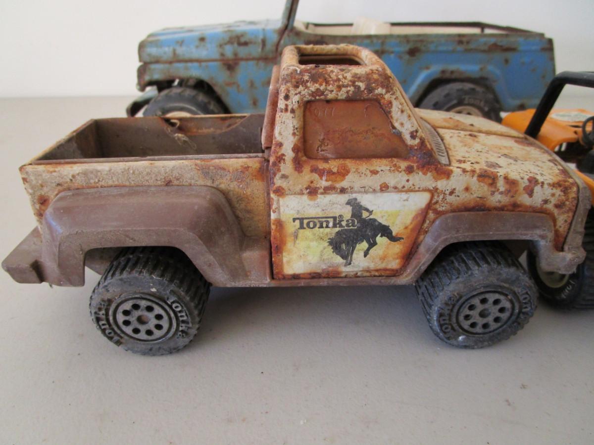 Tonka Blue Jeep 13"x5"x5"; Tonka Truck 8.5"x4"x4.5"; Yellow Jeep 6"x3.5"x3.75"