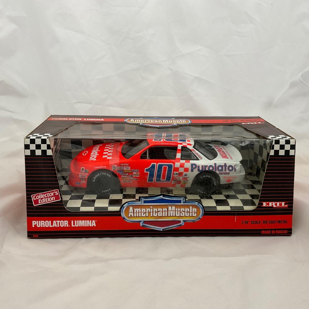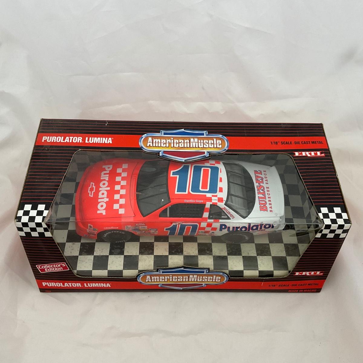 One NASCAR die cast 1:18 scale Purolator Lumina in box. Driver Derrike Cope. Please see photos for details and condition. ::: Shipping is available on this lot. If you require shipping you must let us know at the close of the auction. We will coordinate with you after the item has been won. Shipping fees will include insurance up to or exceeding the value of all items being mailed. If you have any questions regarding this lot please contact the auctioneer either via this website, by direct email or by phone. PICK UP TIMES and other important information can be found in the TERMS and DESCRIPTION of the auction. Please take a look for pertinent information. Thanks!