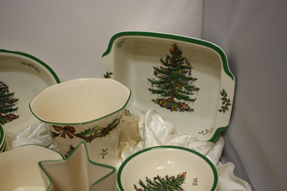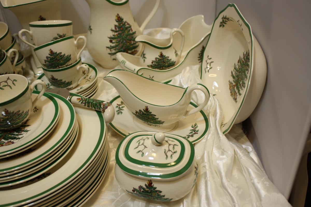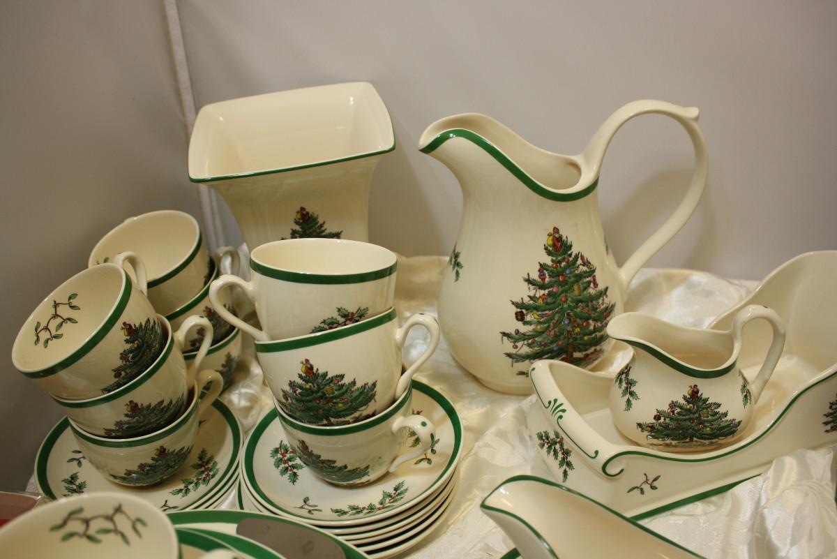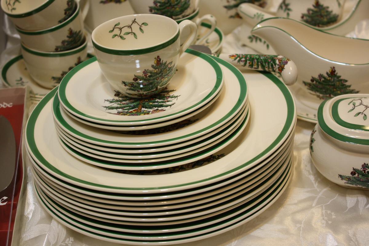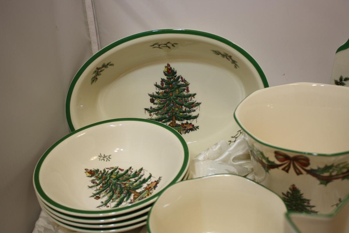 54 pieces Spode (plus 2 non-Spode Christmas pie servers) including 10 dinner plates, 10 cup & saucer sets, vases, pitcher, sugar & creamer, gravy boat, 50th Anniversary vase/bowl, trays, bowls and more. All in very good condition. I did not find any chips or cracks BUT there might be one somewhere. LOCAL PICK UP IN CORVALLIS OREGON ONLY.