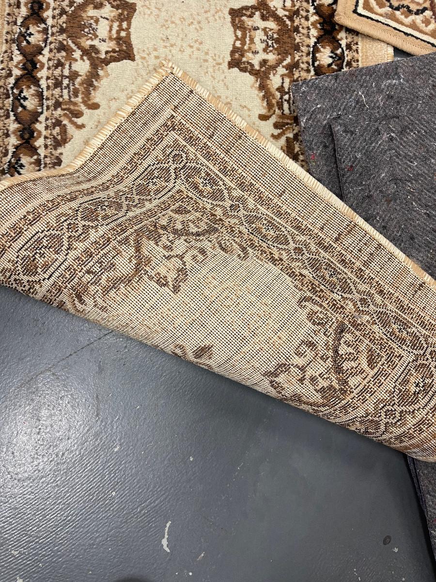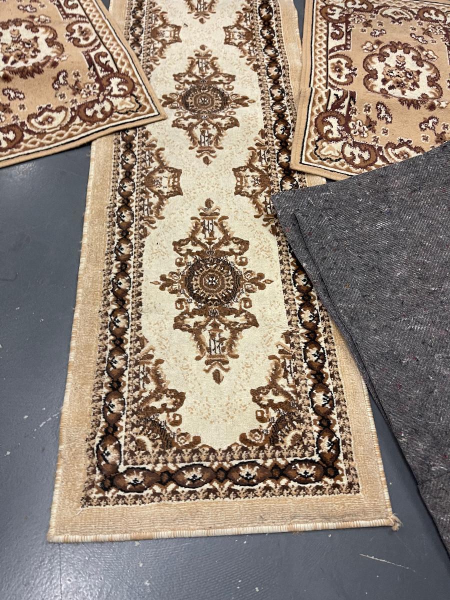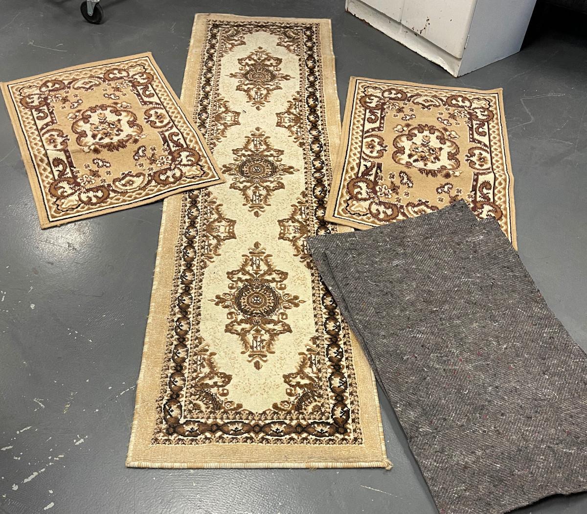the door mats have backing. 88 x 24 on runner 36 x 24 on door.